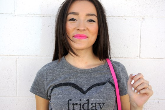My shirt says “Friday, I’m in love” but you can’t see that because I crop every top I wear and it’s getting a little out of hand. I might as well sport it while the weather lets me. I could not be more excited that it’s the weekend, I have tons of fun things planned with my nieces and nephew, it’s gonna be great. What’s not to love about Friday though? It’s the beginning of endless possibilities. No work, no school. I don’t know about you but I’ll be spending my weekend with my family, as always, and watching loads of movies. I even signed up for a run for charity that I will have a blast w a l k i n g in if you know what I mean.