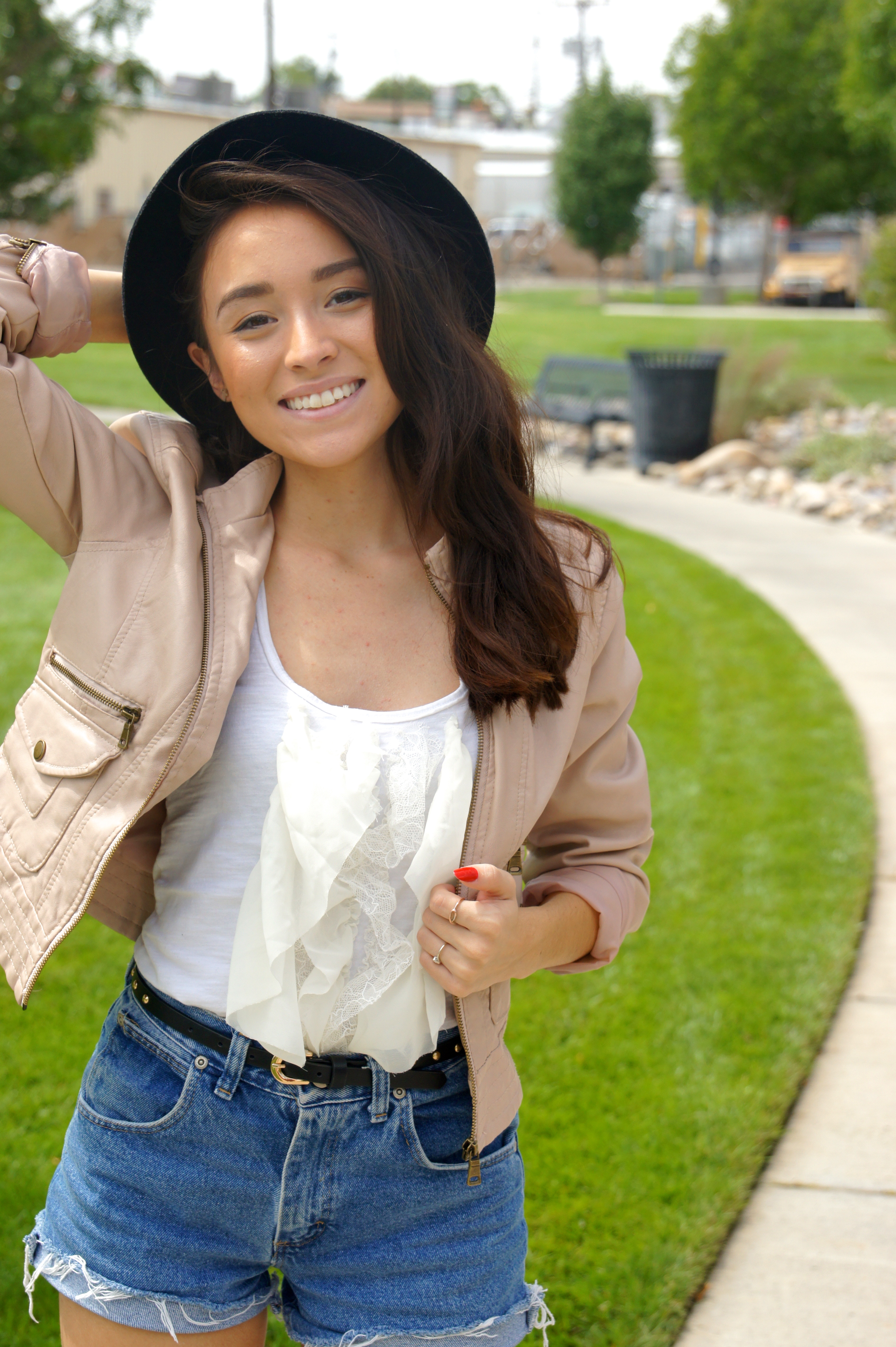 Leather Jacket: Target Shorts: Thrifted Shoes: F21 Fedora: F21 Bracelet: Gift from my mommy Belt: F21 Shirt: Really old from Hollister