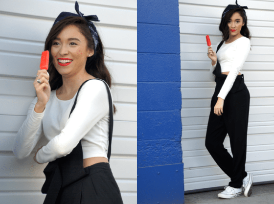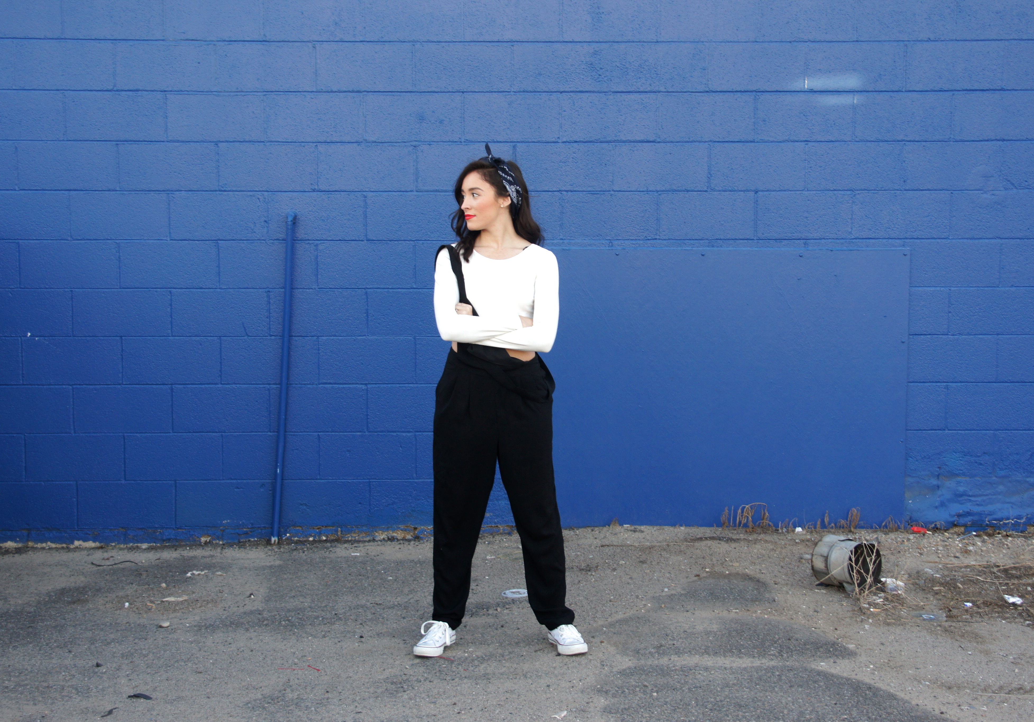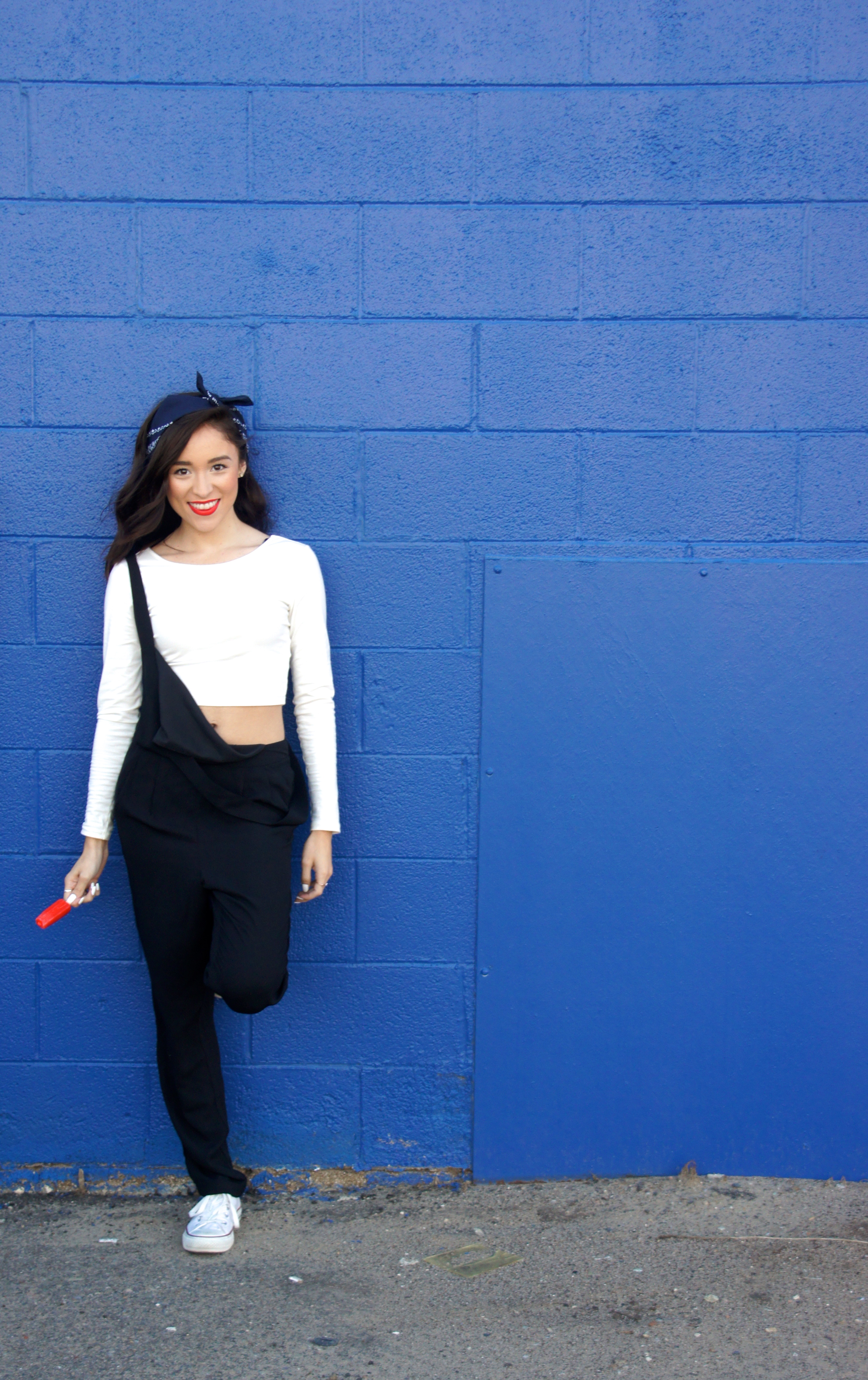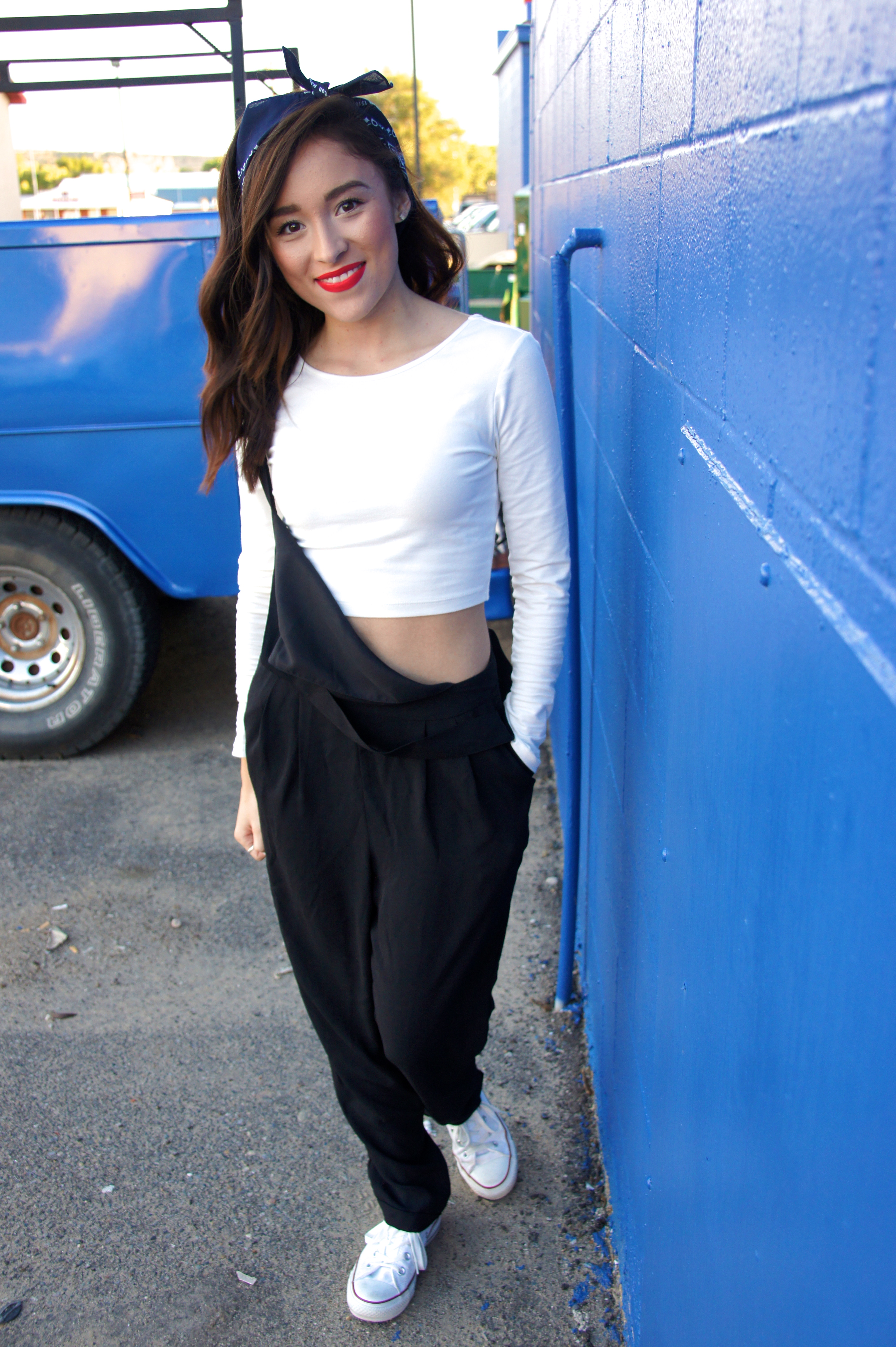 Jumpsuit: F21 CropTop: F21 Shoes: Converse Lipstick: Revlon