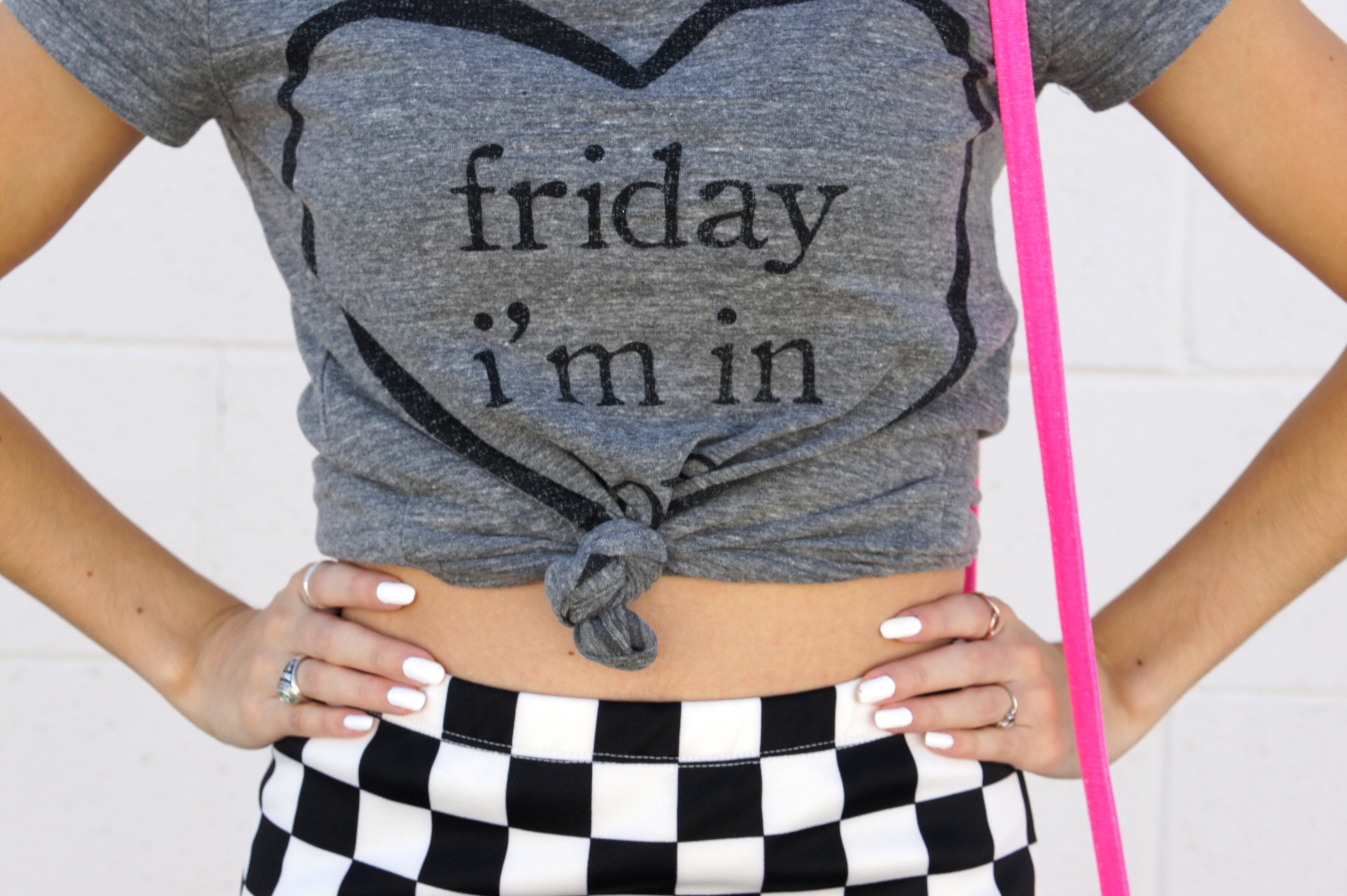 My shirt says “Friday, I’m in love” but you can’t see that because I crop every top I wear and it’s getting a little out of hand. I might as well sport it while the weather lets me. I could not be more excited that it’s the weekend, I have tons of fun things planned with my nieces and nephew, it’s gonna be great. What’s not to love about Friday though? It’s the beginning of endless possibilities. No work, no school. I don’t know about you but I’ll be spending my weekend with my family, as always, and watching loads of movies. I even signed up for a run for charity that I will have a blast w a l k i n g in if you know what I mean.