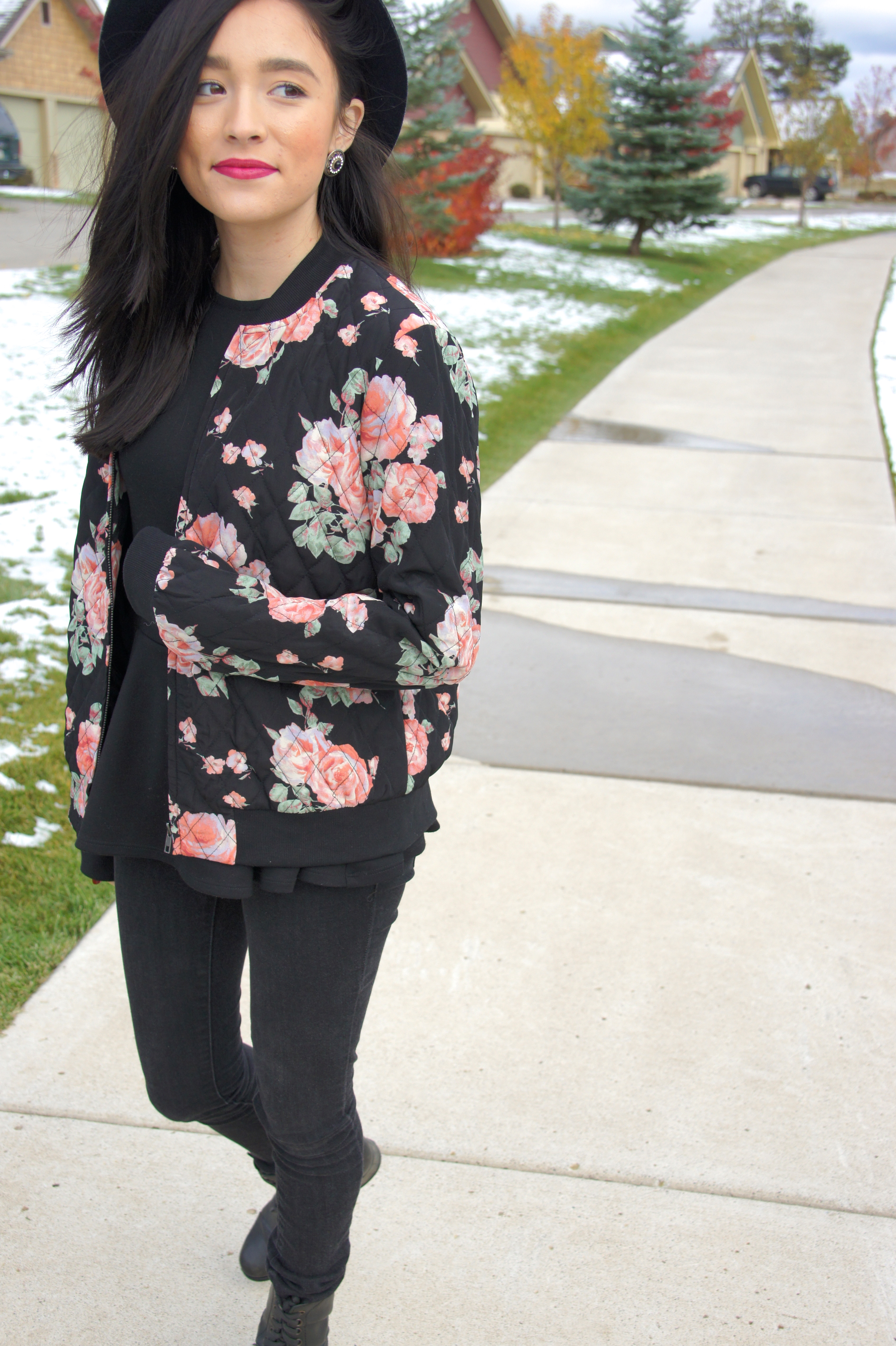 I love the floral bomber jacket! It’s so pretty and it also has that nice contrast between being edgy and being girly which is always great! π