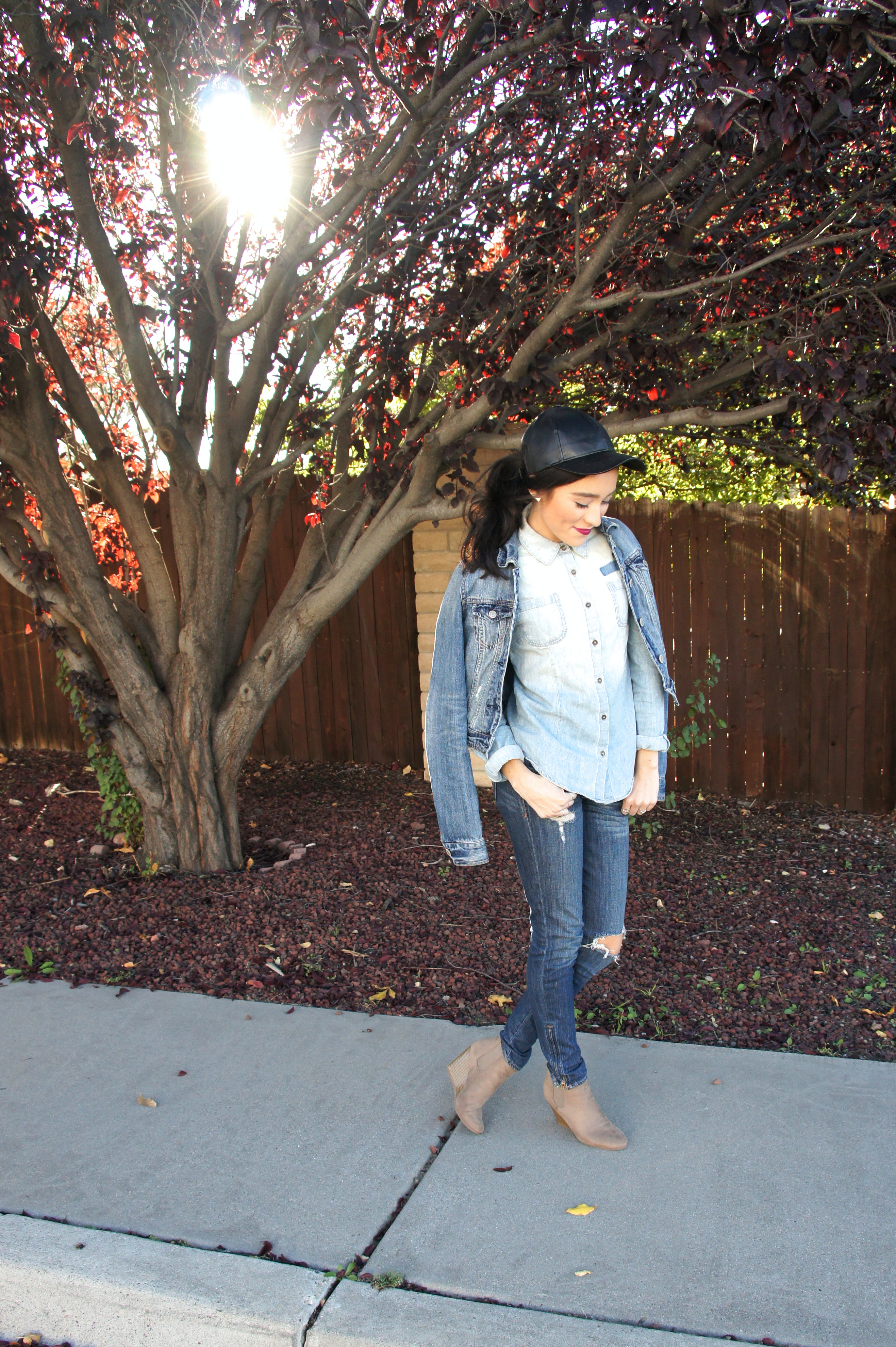 I can’t count how many times I’ve worn this look in the past year, it’s one of my favorite go-to outfits and it truly is universal. If you’re a new york city type of girl or if you’re a country girl, like really, anyone can do this it’s unreal. Denim is really the only time you can overload on it and it won’t look bad. Also, I always change my accessories when I wear denim on denim. Today I decided to make it a little sporty with a pleather baseball cap and added wedges to make it girly.