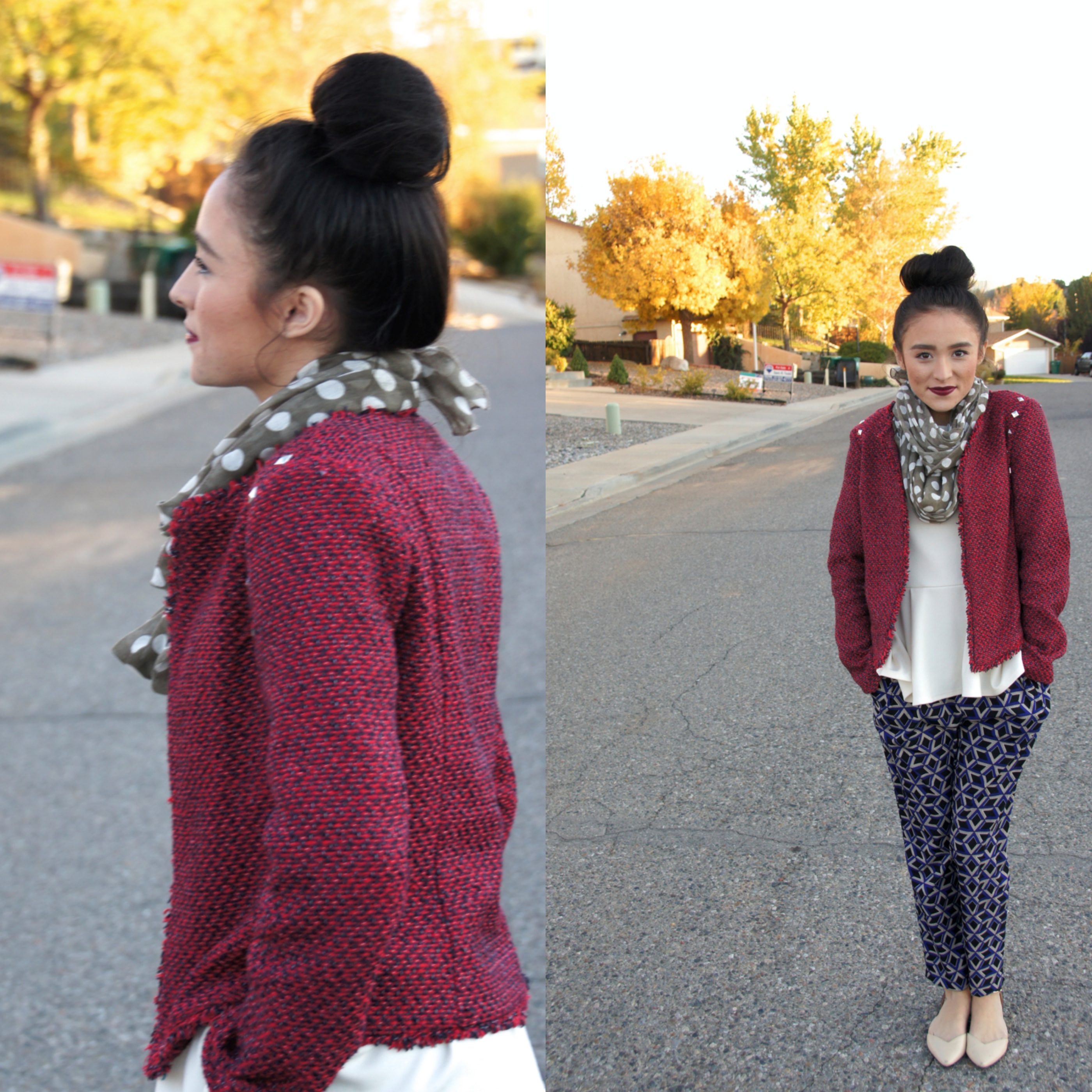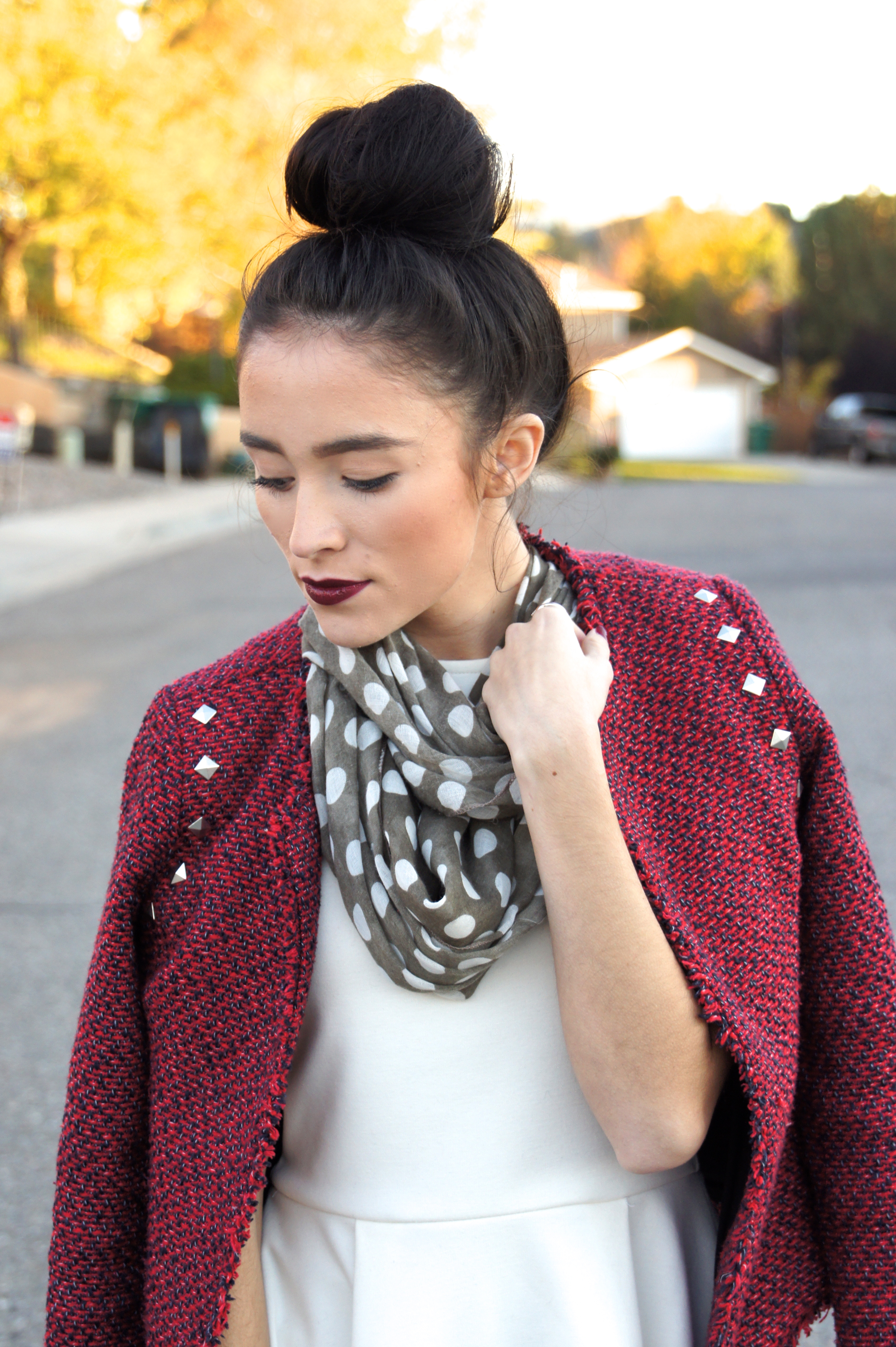 Jacket: Tjmaxx Top: F21 (similar) Bottoms: F21 Scarf: Boutique in Madrid, Spain Shoes: F21 Lipstick: NYC