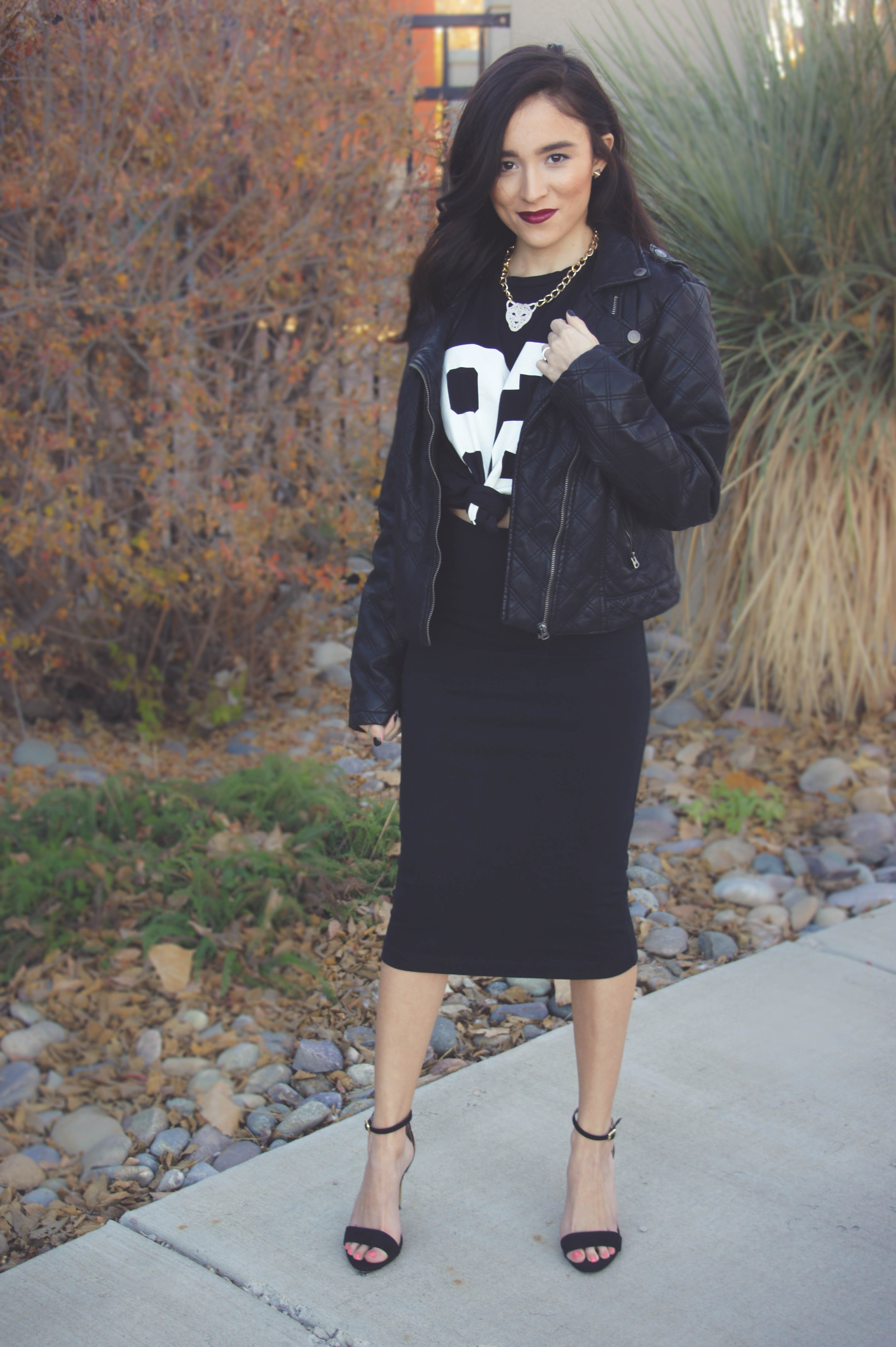 Biker glam baby. I know what you’re thinking. Karissa, wear something other than black but I have to say it’s by far my favorite color ever. I read a quote the other day that literally matches exactly how I feel about the color black. Here it is: “Black is not sad. Bright colors are what depresses me. They’re so empty. Black is poetic. How do you imagine a poet? In a bright yellow jacket? Probably not.” – Ann Demeulemeester