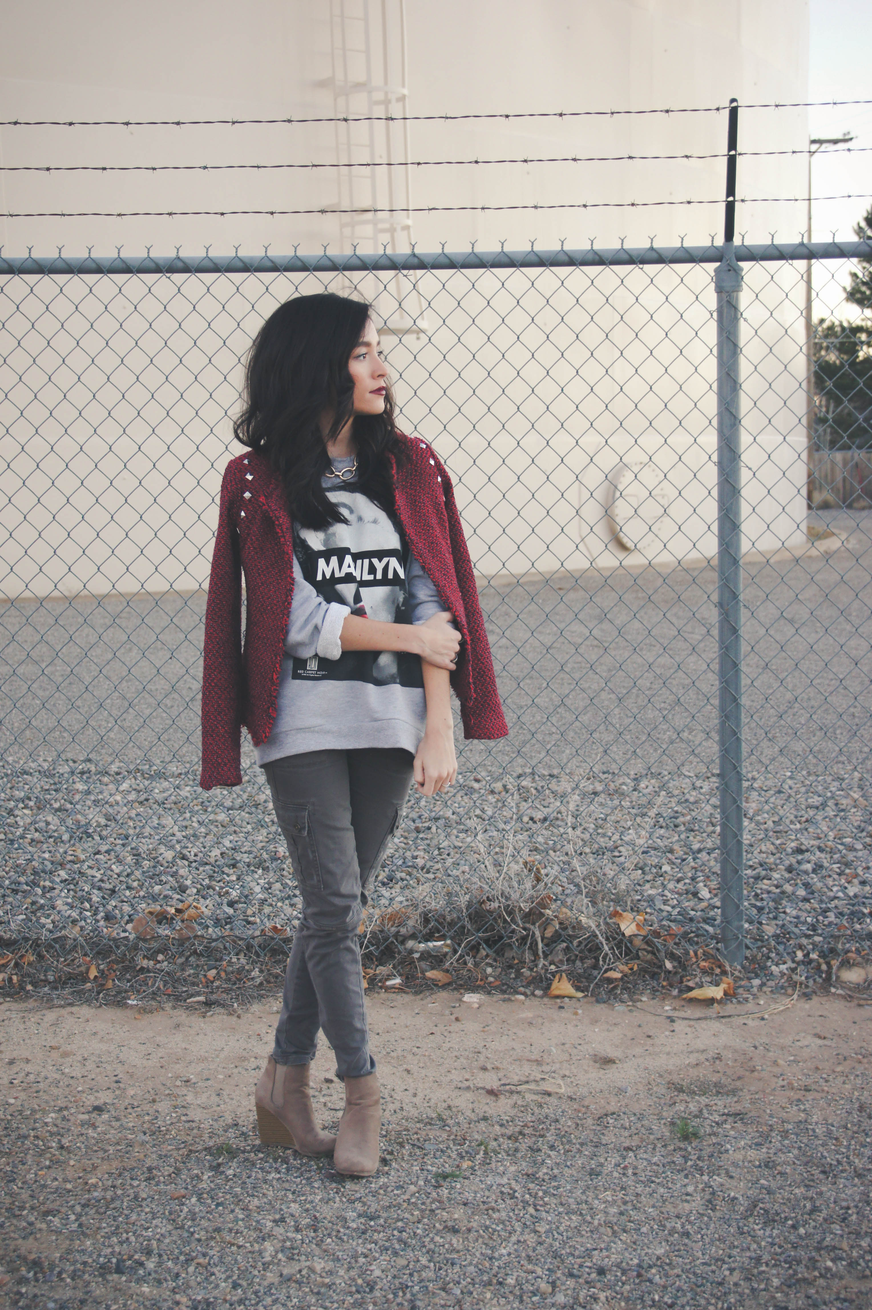 Jacket: TjMaxx (sold out) Sweater: F21 Pants: Hollister (old) Shoes: Target Nail Polish: Sephora Necklace: F21