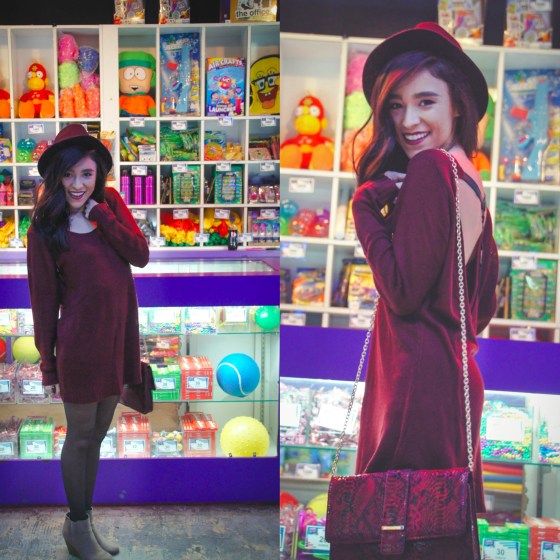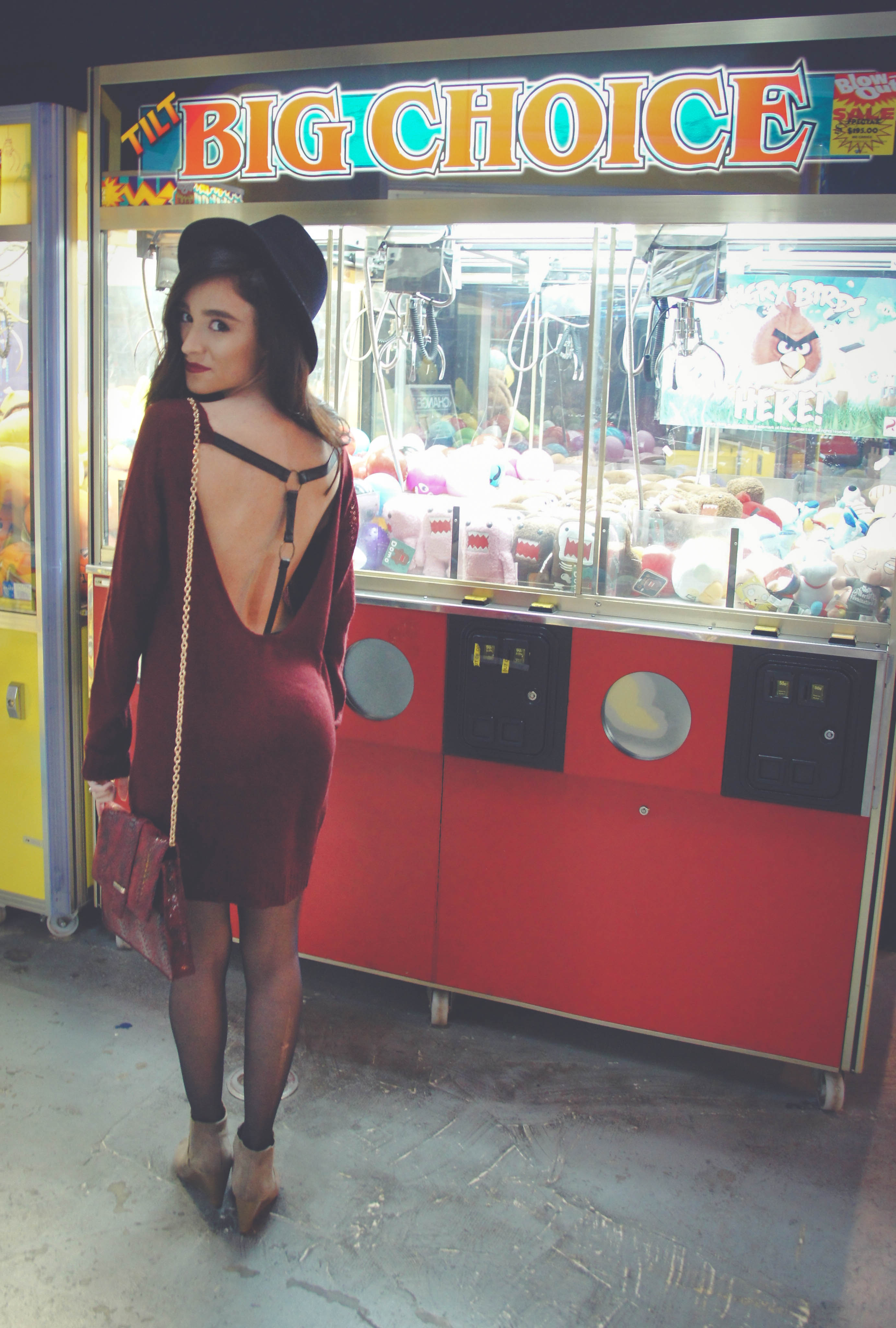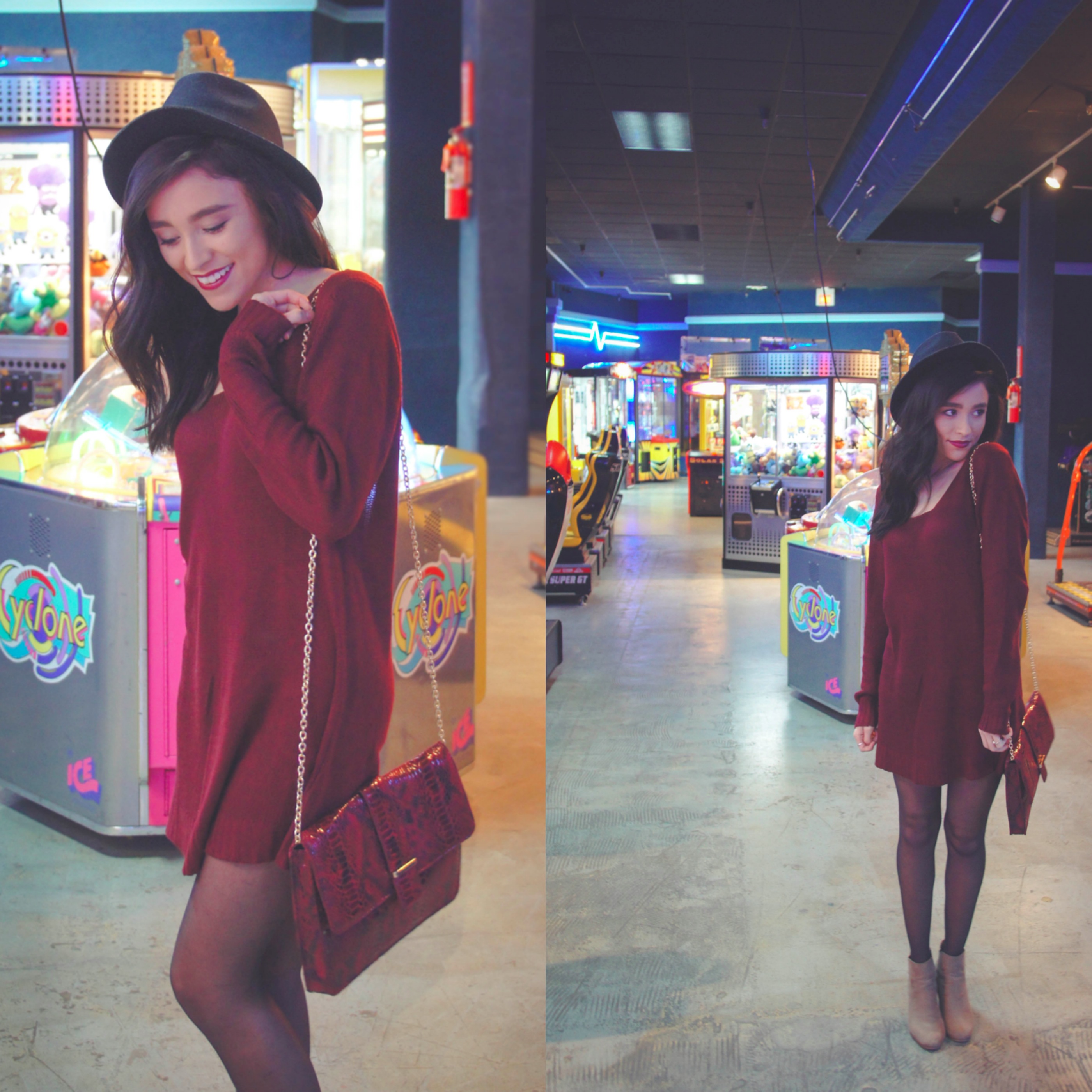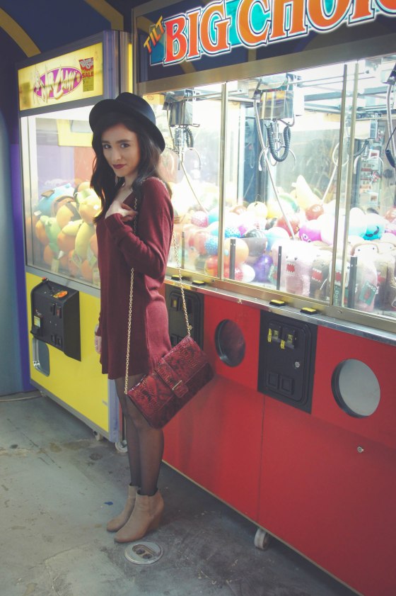 Hey guys! I am one lucky girl. I’ve been chosen to be one of the first to see Hope’s new lookbook called ” My Fair Lady,” and I have to admit, they have the cutest outfits. It’s a carnival theme but I decided to improvise and take these shots inside an arcade. They sent me this sweater top but I wore it as a sweater dress kind of thang. I love it. The backless back is my favorite. I’ve never had the courage to wear a backless top but it’s such a thrill when you step outside of your comfort zone. Like I said a while back, beautiful things happen when you’re outside of your comfort zone. This amazing faux snakeskin purse is also from Hope’s Lookbook. You guys must check out their shop. They have cute, affordable items for fall. Stay tuned for more posts featuring Hope’s clothing.  SONY DSC SONY DSC SONY DSC SONY DSCTop: Hopes Purse: Hopes