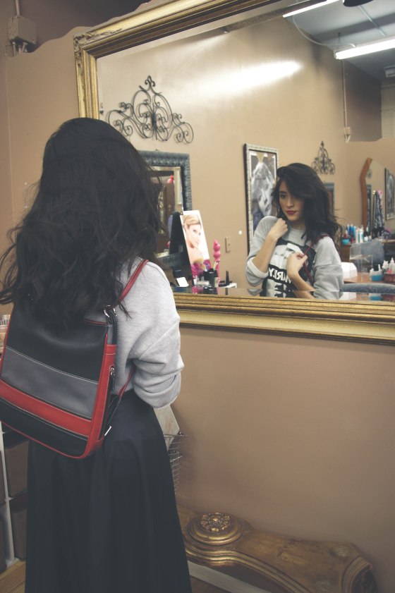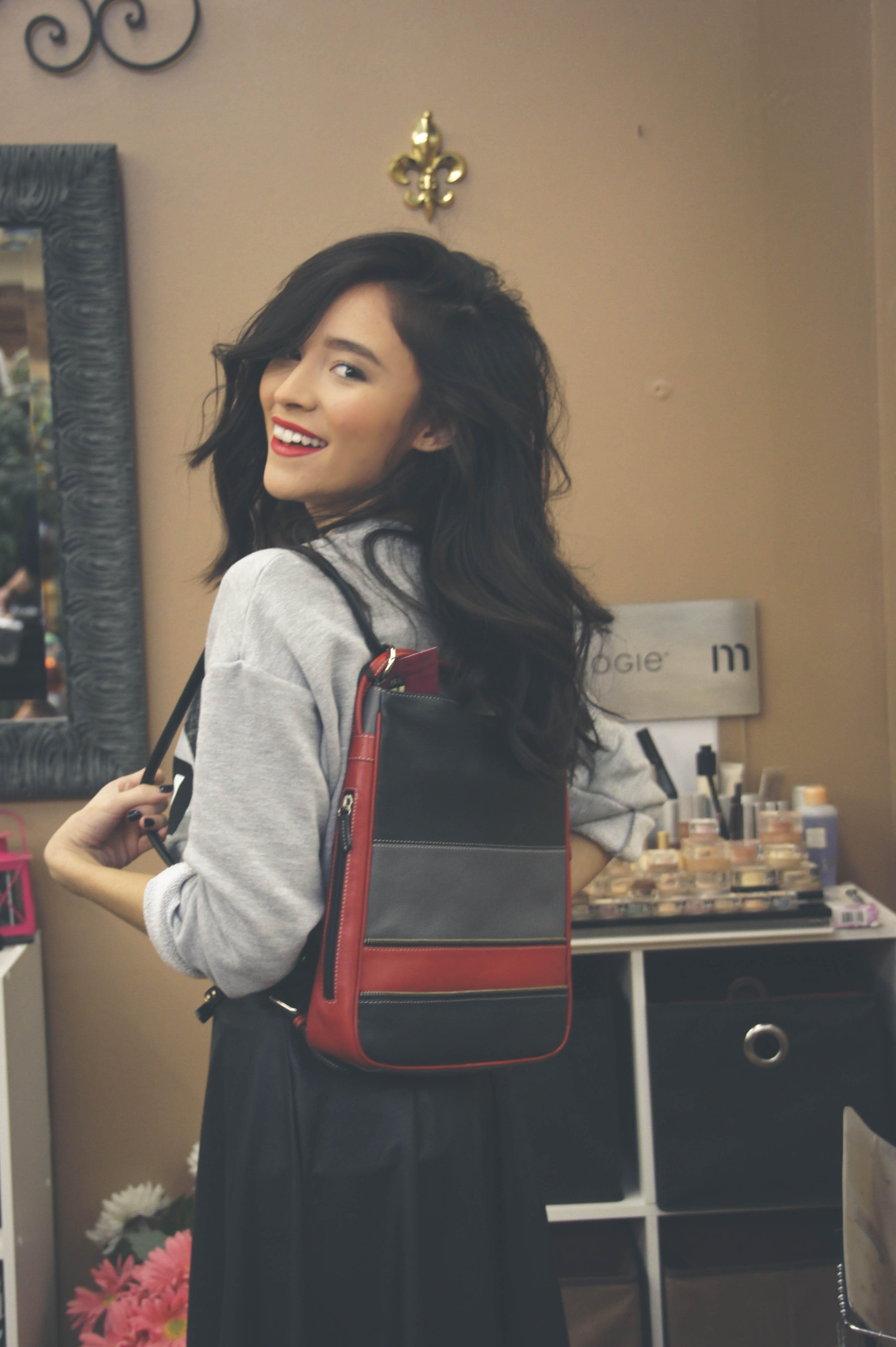 Hello babes! So remember that photo shoot I did not too long ago with a local beauty salon? Well, I snuck away for a few quick shots in this outfit which was my favorite outfit of the day. I honestly cannot get over this bag from Nearly Famous. It can be adjusted to wear over the shoulder like a normal purse, but my favorite way to wear it is like a back-pack. SO CUTE! Nearly Famous Salon has a very “vintage” feel to it. Marilyn Monroe is on every corner, so what better top to wear than this one that you’ve seen on me a few times before. It’s so comfortable, I really can’t go a week without wearing it.