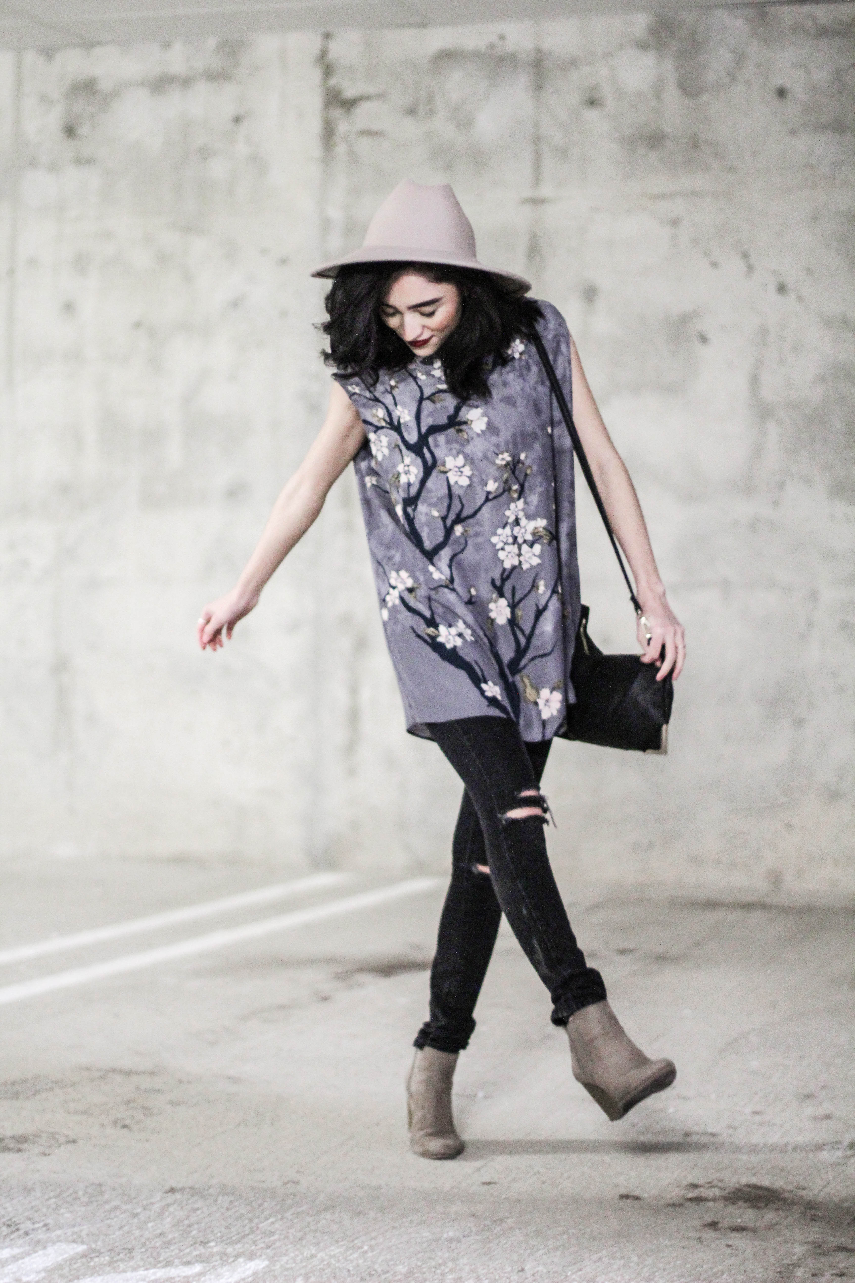 A typical “day” outfit has to be appropriate for effortless mobility. Work, errands, meetings, shopping: It all has to be done so why not do it in an outfit that’s going to make you feel good while doing those pesky little things on your to-do list. Skinny jeans and a tunic are what I reach for on these particular days. It’s my way of saying “Look, I’ve got stuff to do. A dress is too fancy and t-shirt just won’t do, so here’s my tunic everybody, say hi.” I threw on my all time favorite fedora and my all time favorite boots and I suddenly I created my all time favorite “go to” errand runnin’ outfit. Like, watch out world, I’m on the go! Check check checkin’ off everything on my To Do list. You can’t stop me or my tunic…mmmkay?