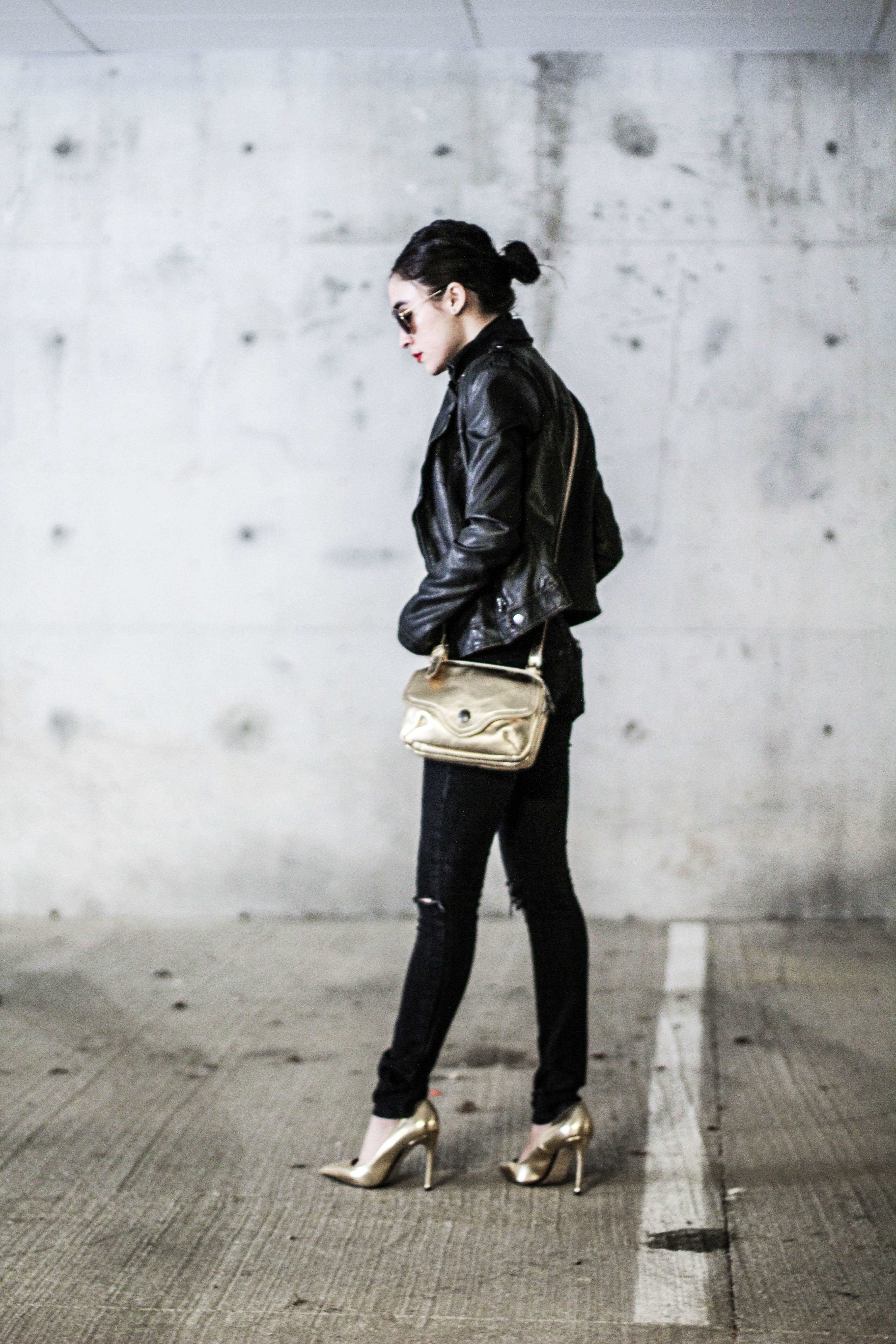 IMG_6950IMG_6971 IMG_6952IMG_6976 IMG_6961I can’t remember how early I woke up on this day. It was a whole lot earlier than what I’m used to that’s for sure. On days when I am truly exhausted and to be honest, not in the best mood, I wear all black. An all black outfit is my way of telling the world that “I’m not my normal happy self, just ignore me please.” I usually sport an all black outfit when I need to get things done and don’t feel like looking approachable. Like, seriously, ignore me. If you can’t tell already, I wasn’t wearing ANY makeup in this post besides some red lipstick. I’ve been rocking this “no makeup” look a ton lately. I’m going through a weird phase where I actually hate makeup. Less is much much more to me nowadays. I also threw on some bold sunglasses to hide the lack of sleep instead of putting on concealer. If ya know me, you know that I love gold accents. I think I even have a past blog post that’s titled ‘gold accents.’ I’m not too sure. Anyways I was so thrilled to rock these gold heels and my gold purse. My two favorites in one little post.