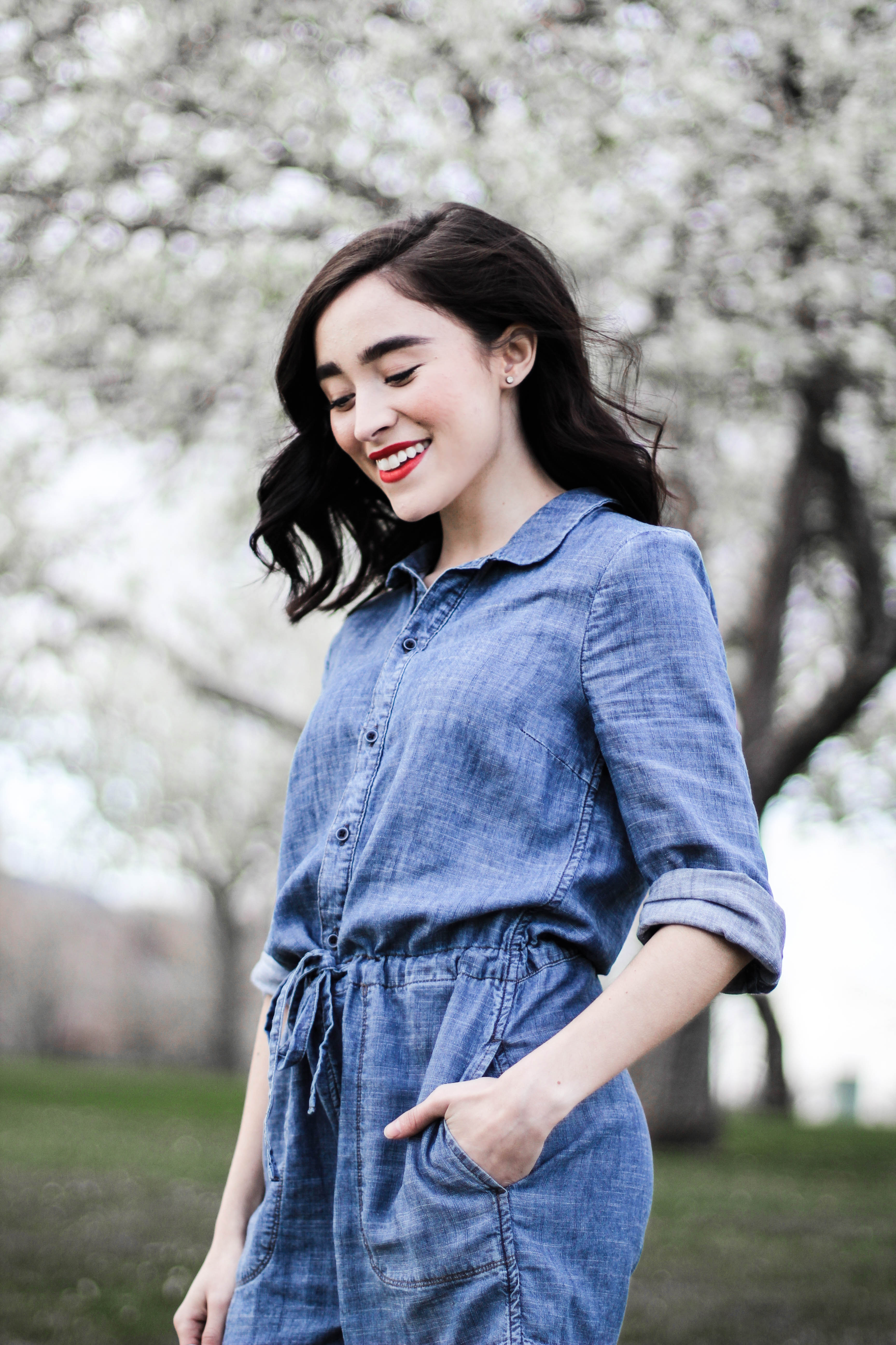 Here’s yet another post showcasing my obsession with the Indigo trend. Like I said before, I dive head first into trends because that’s the only way to really know what you love and what you don’t love. Indigo? Ya, I love. Some clothing items don’t shine very bright when they’re hanging on a hanger. This romper was one of those pieces. It was displayed as an Indigo blob of nothing important but as it turns out it’s currently one of my favorite pieces in my closet. This is why it is so important to give a piece of clothing a chance and try them on. I don’t know about you but this romper screams spring and summer. I’m pretty sure that I wore this little guy 3 times last week because it’s so easy to pull of and not to mention comfortable. Based on experience and feedback this romper suits the smaller chested the best. Ladies with a larger bust have mentioned some major tugging in that area. Every once in awhile my smaller chest takes the win. I would be devastated if this romper didn’t work because it’s going to be summer go to with a classic red lip. Be prepared to see this romper on my Instagram a lot. Speaking of which, go follow me @karissamariie