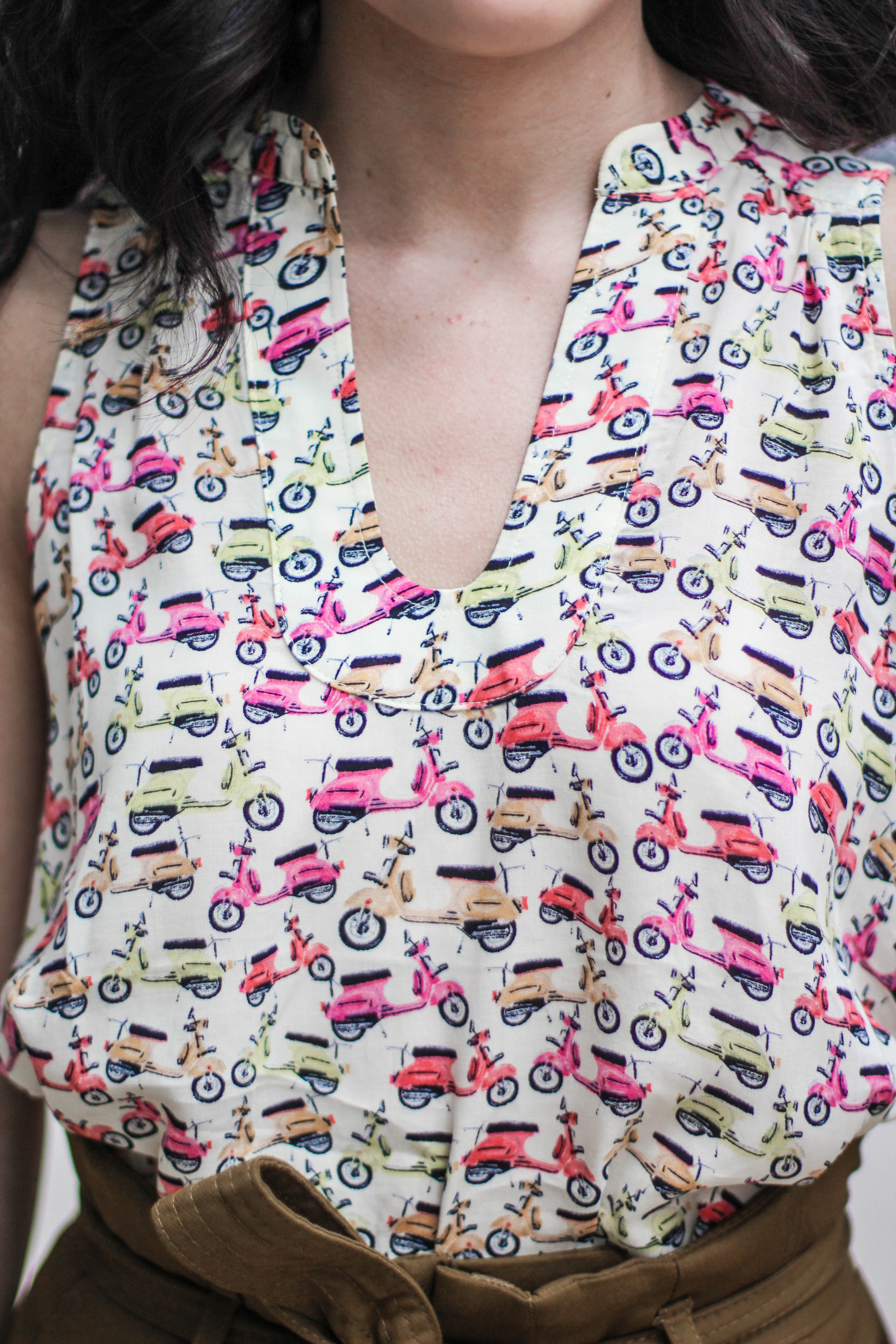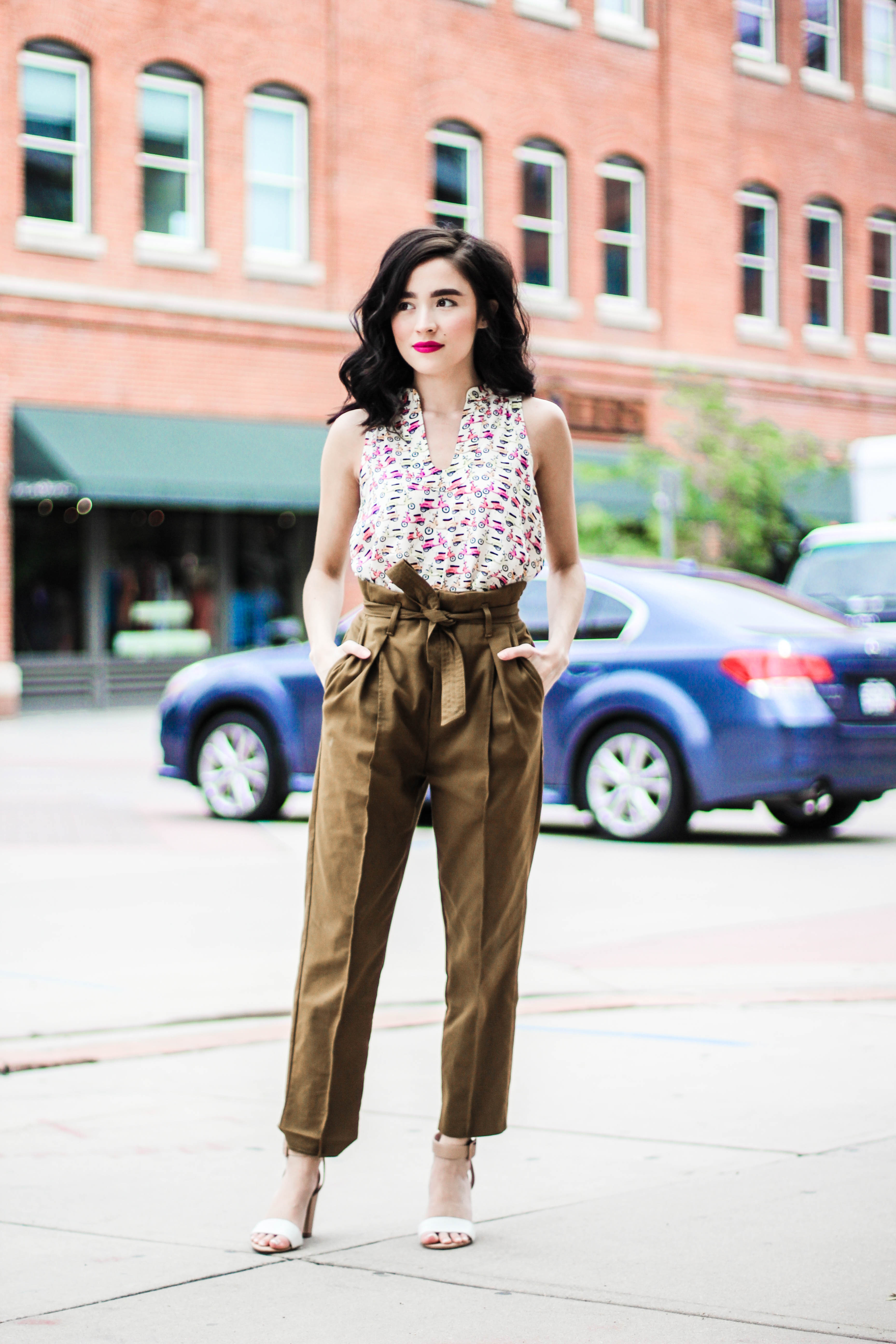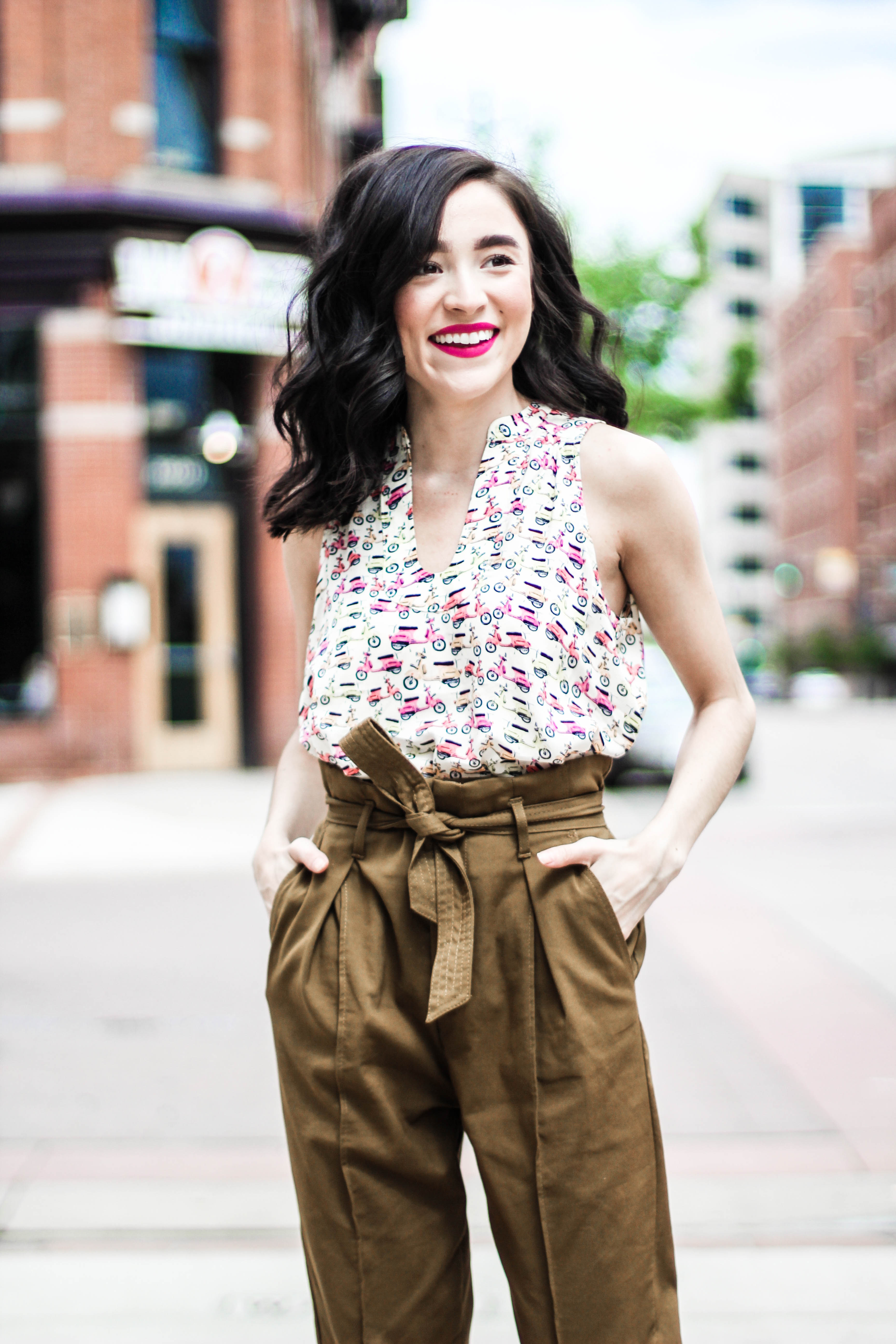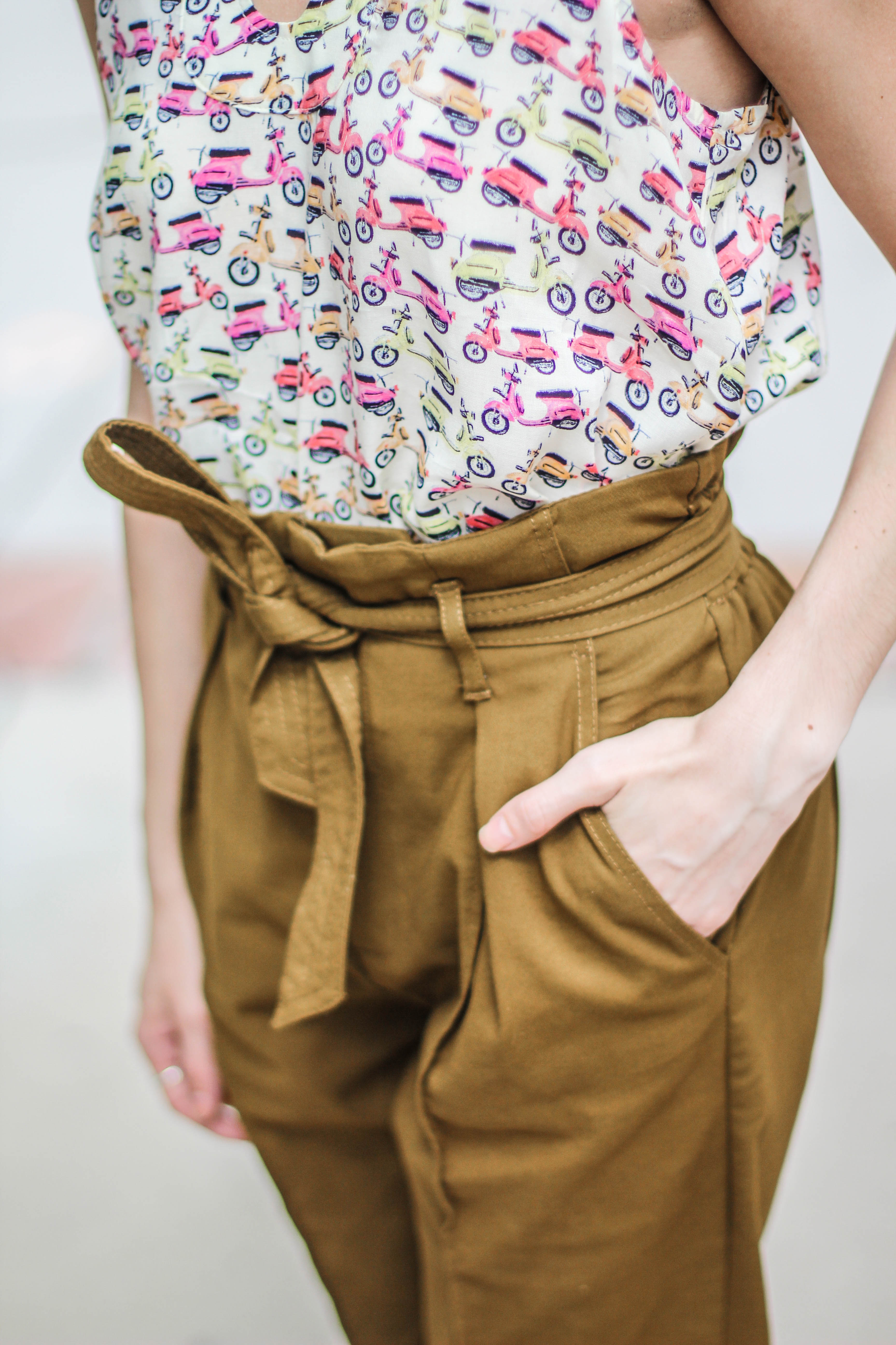 Okay, hold up. A scooter printed top? Sign me up! I don’t think there is a cooler top on this planet to be honest. I got nothing but compliments and funny stares when I wore this lightweight, preppy tank and I didn’t mind because I know it’s the best. The shape is short and boxy: Exactly how I like my men. Ha. Just kidding Wyatt. I would wear this top with simple skinny or relaxed jeans on a casual day but decided to spruce it up with my favorite paperbag trousers.