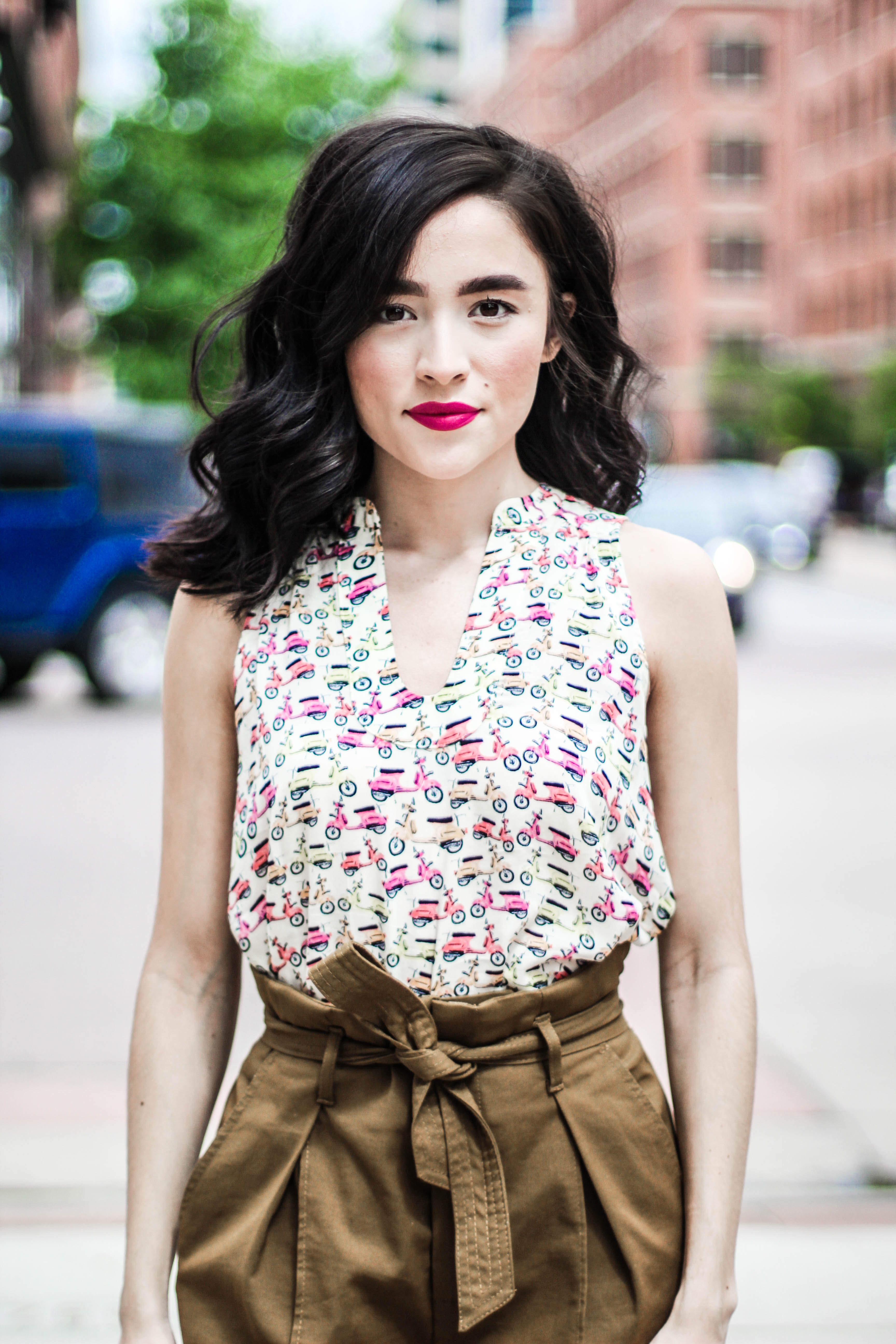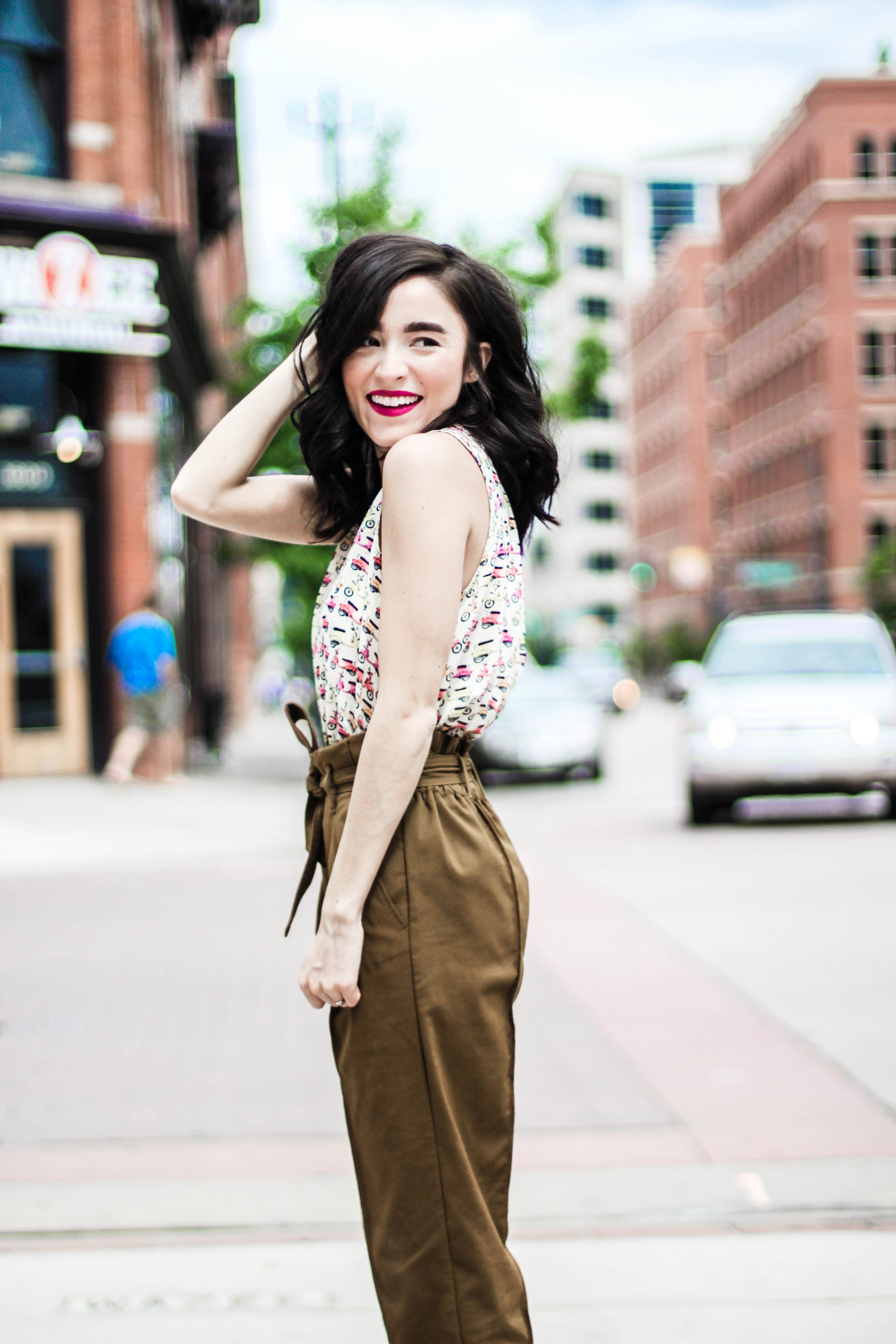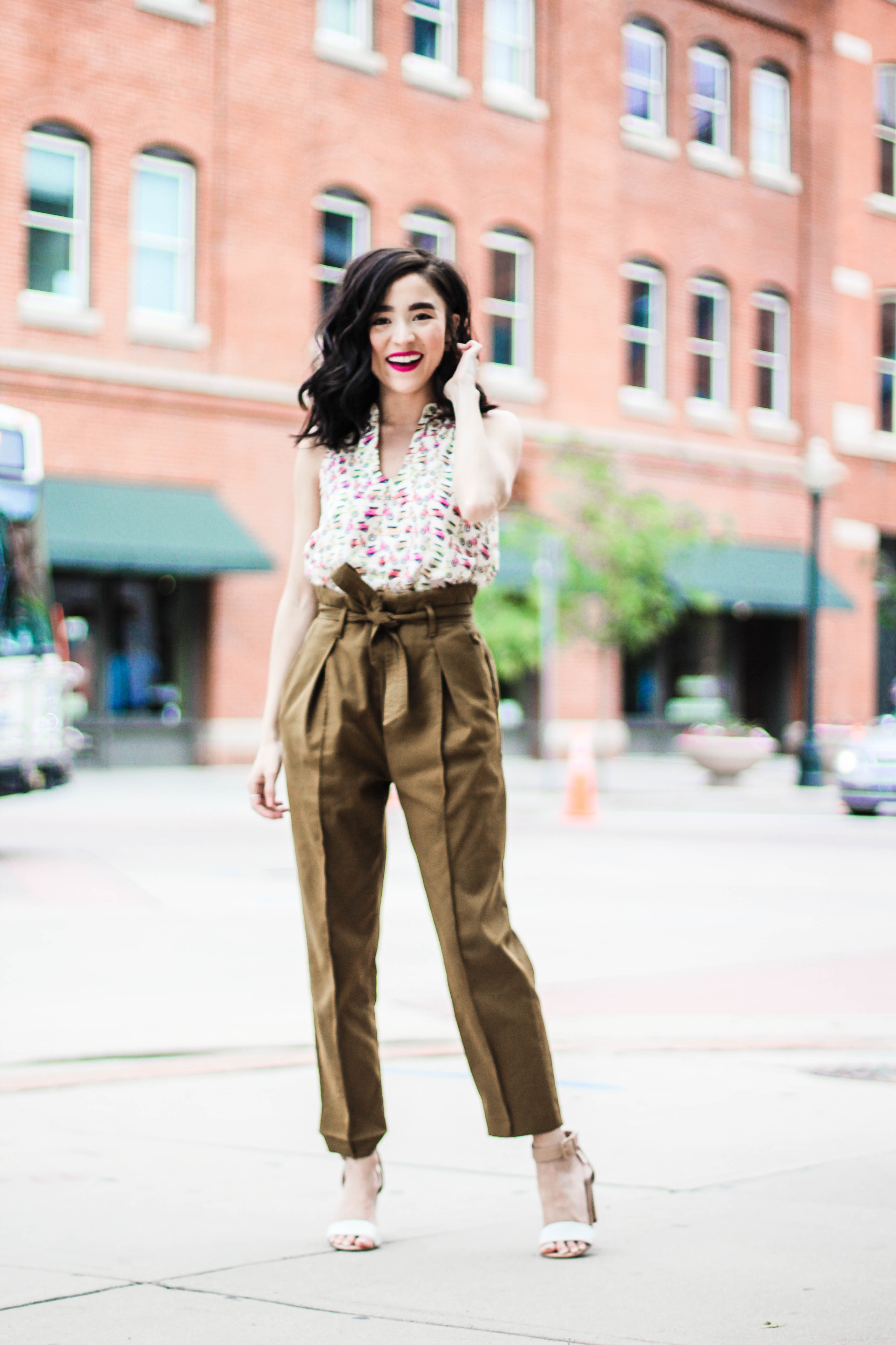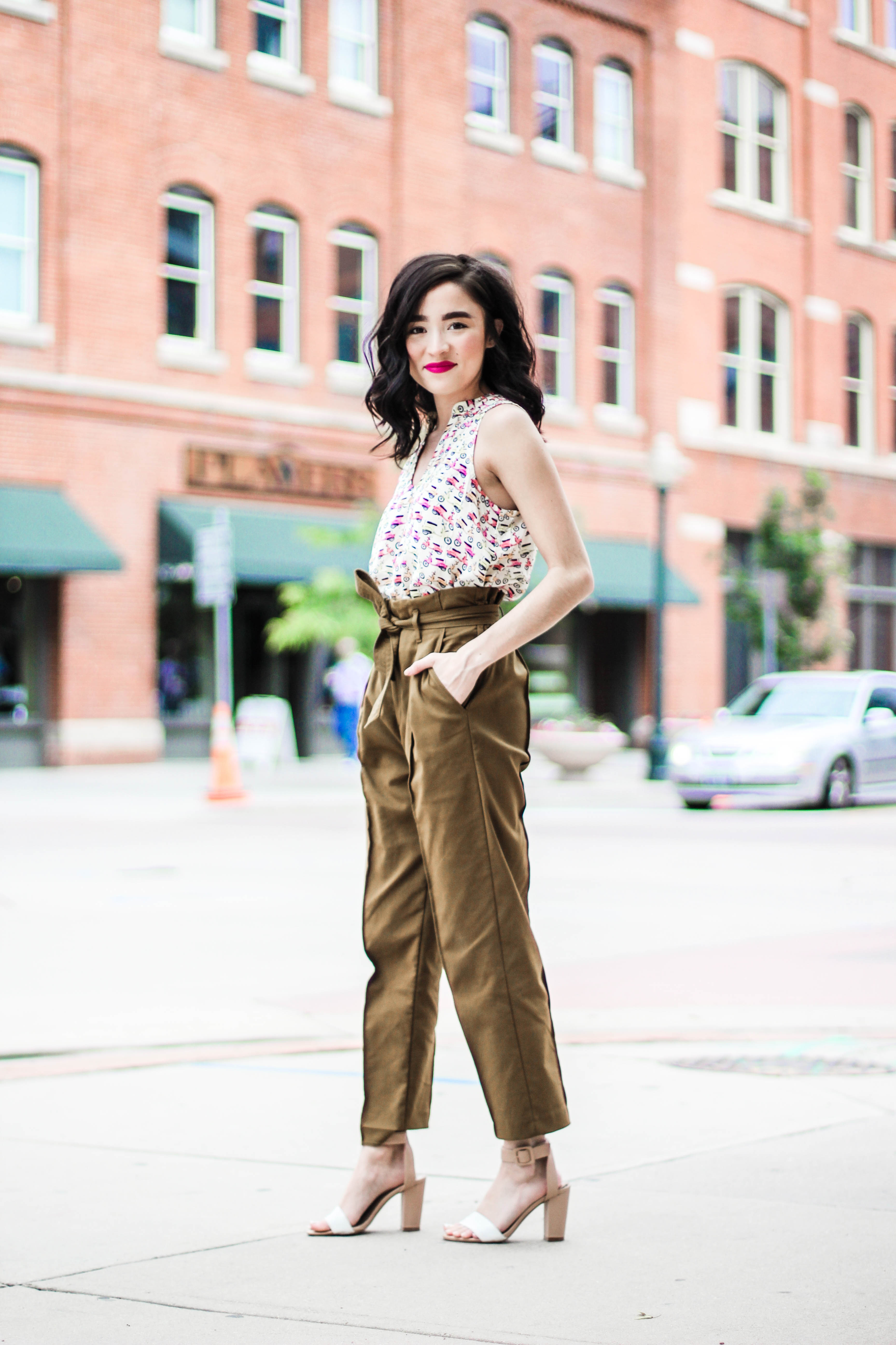 Okay, hold up. A scooter printed top? Sign me up! I don’t think there is a cooler top on this planet to be honest. I got nothing but compliments and funny stares when I wore this lightweight, preppy tank and I didn’t mind because I know it’s the best. The shape is short and boxy: Exactly how I like my men. Ha. Just kidding Wyatt. I would wear this top with simple skinny or relaxed jeans on a casual day but decided to spruce it up with my favorite paperbag trousers.