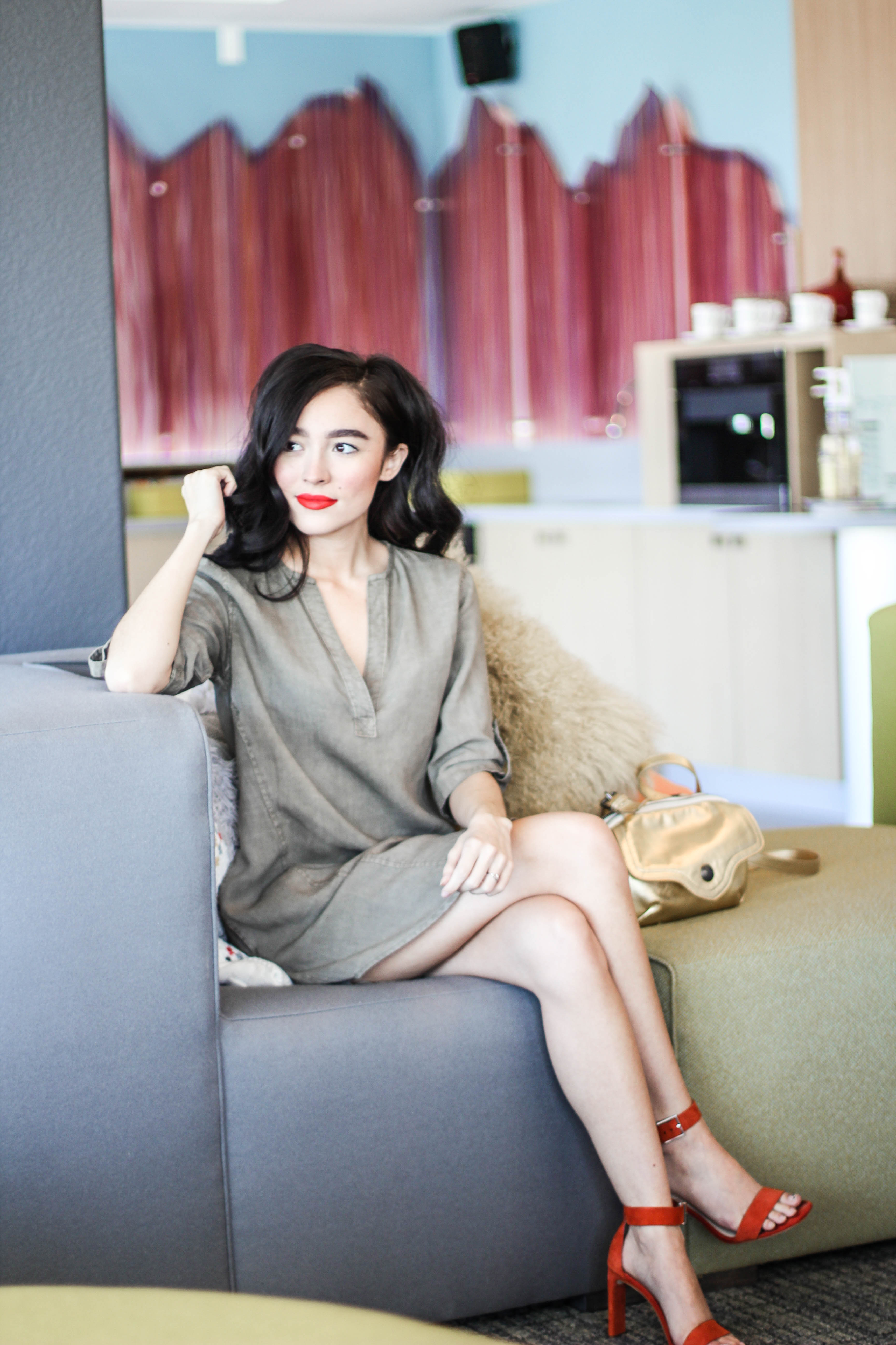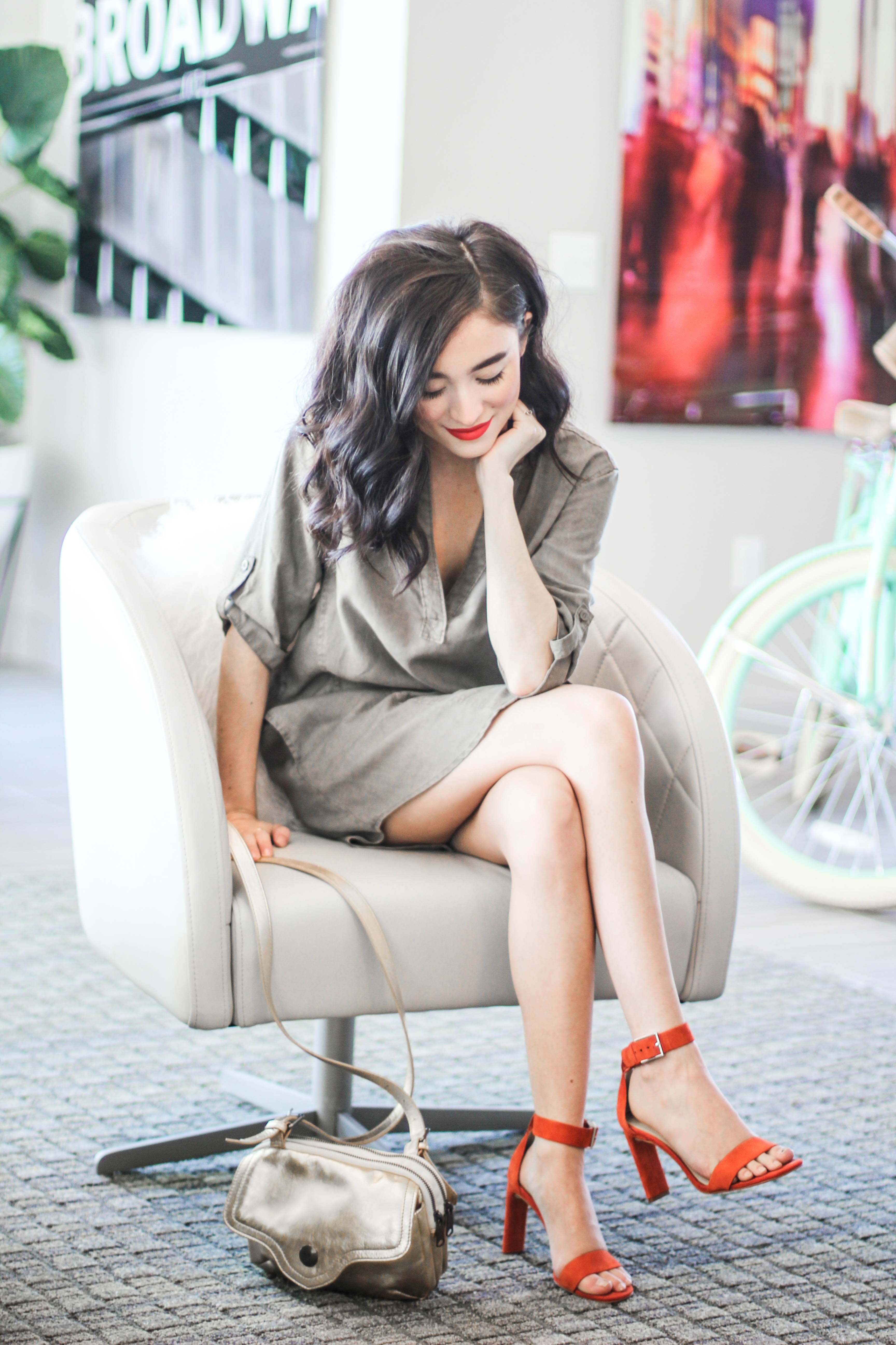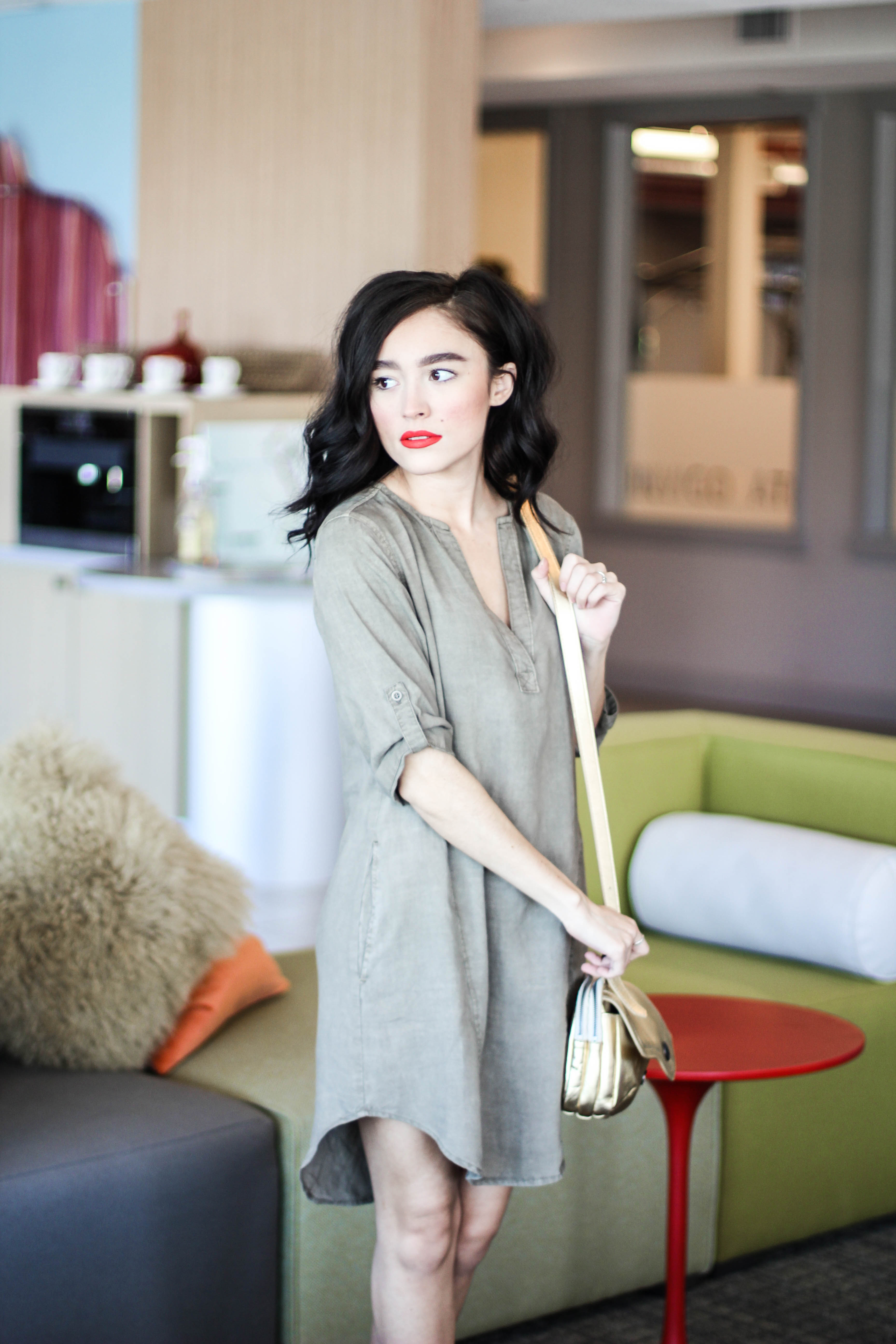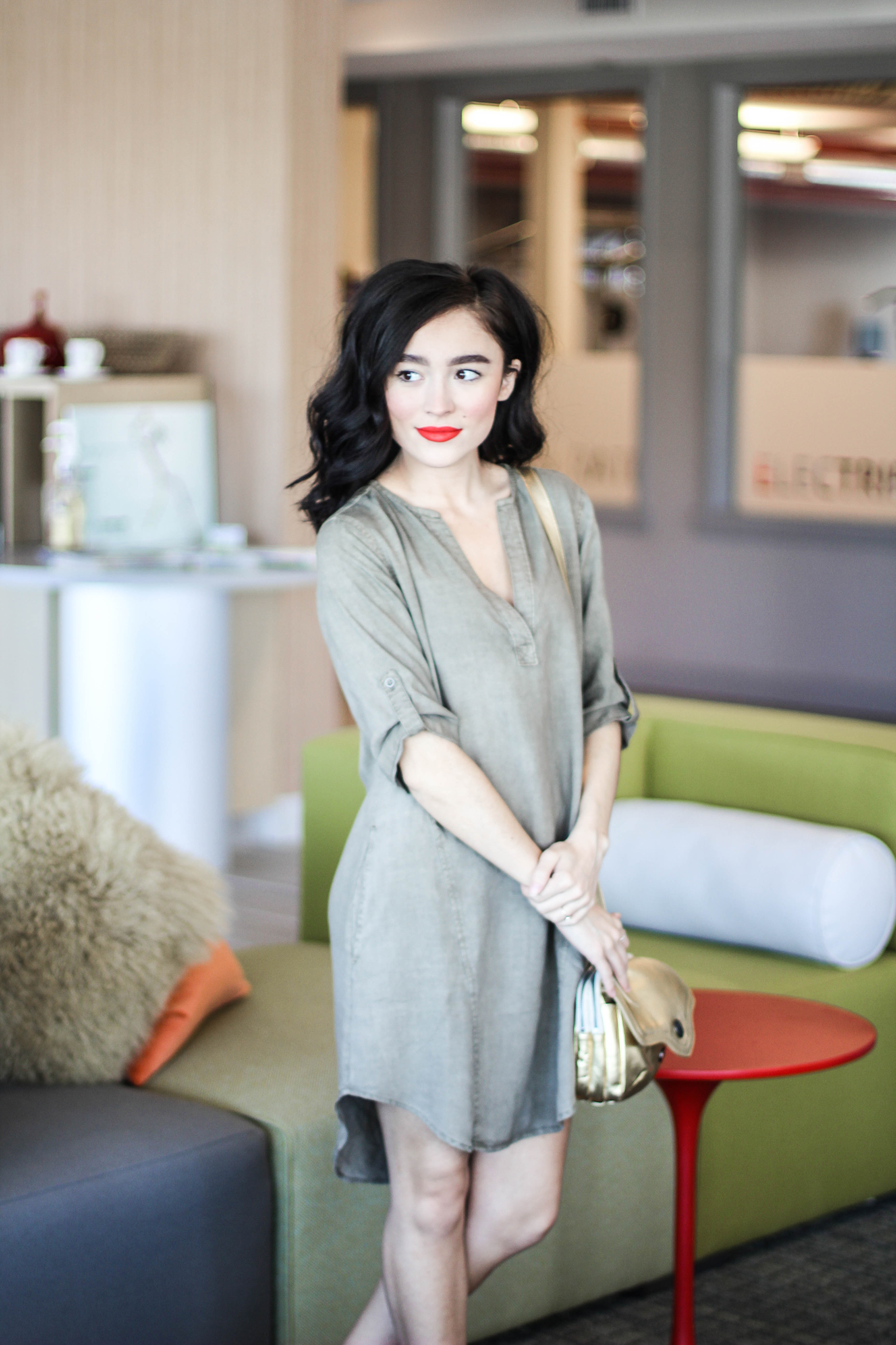 I’ve been loving the minimal look as of late. There’s a combination of things as to why I’ve been rocking this simple look but most of it revolves around on not having the time to get too creative with my outfitting. Settling into my new home and my crazy busy schedule are the main contributors to my lack of focus and drive on fashion blogging. There’s nothing wrong in being a little busy bee. I promise to bring you new fabulous posts here and there once I’m feeling like I have everything under control. But until then, I’ll be wearing what I wear best: Minimal and Chic. This tunic has been the biggest life saver. I’ve ran to this moss colored beauty in times of need and it has never failed me. Just recently, I chose this exact outfit for a much needed date night with Wyatt, and don’t worry, I brought along my trusty black leather jacket to keep things looking spicy. Moss is the easiest color to pull off and combined with this Cloth & Stone fabric it’s a winner on so many levels.