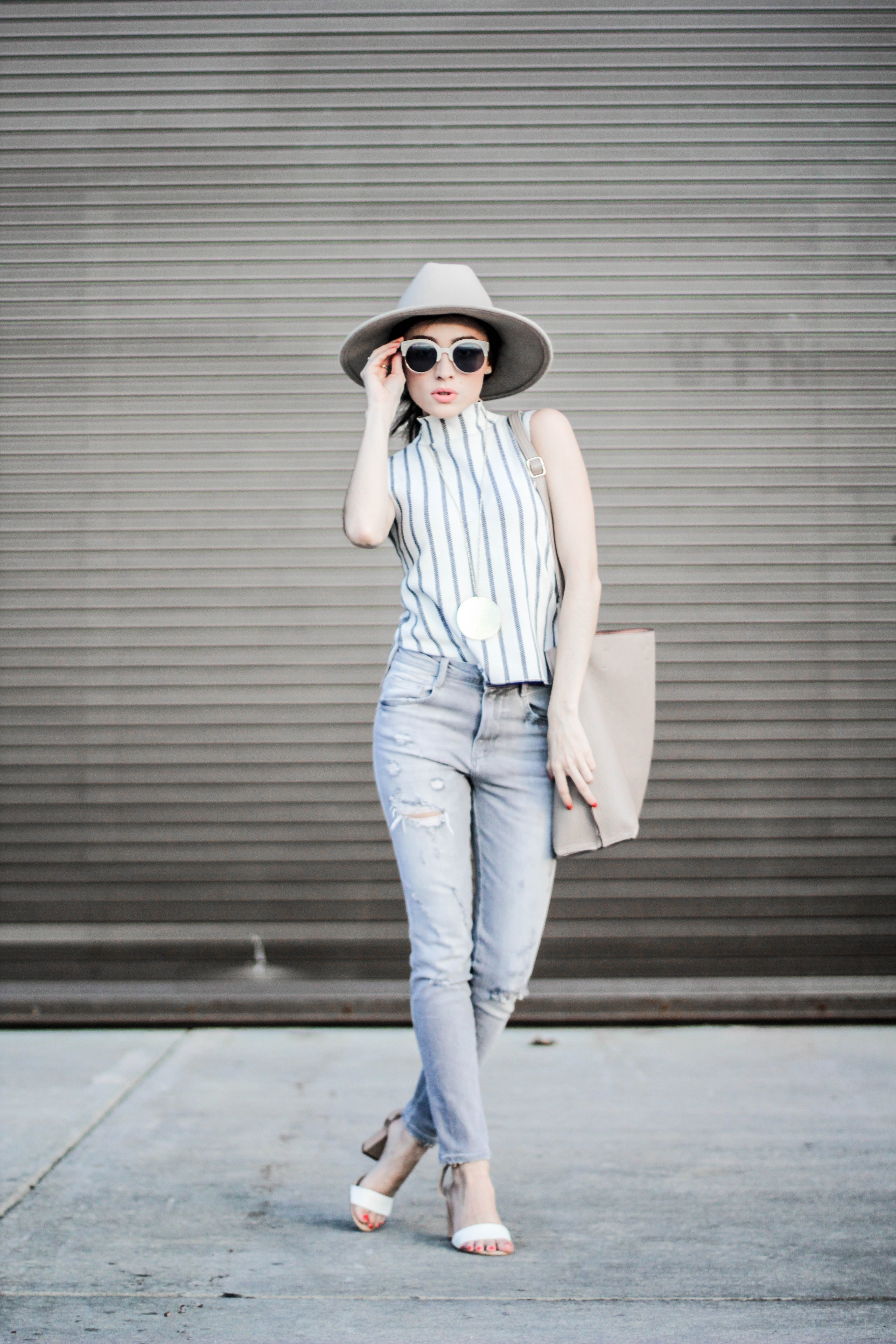 IMG_0716 2 IMG_0721 IMG_0707 IMG_0723 IMG_0718 2 IMG_0724 IMG_0717 2I love me some shades of grey. Light grey, dark grey and well, I think that’s all the grey I can think of at the moment. I’ve been searching for the right pair of distressed, mid-rise grey jeans. It’s been a serious struggle but while I was in New York I stumbled across the perfect pair. They have the right amount of distressed and they’re just the right shade of grey. They may be new to my distressed denim collection but I love finding more and more ways to style them. For some reason I just love to add even more grey. Neutral looks are so chic and quite easy to pull off. I always try and add a touch of gold with a statement accessory and keep things elevated with my forever favorite heels.