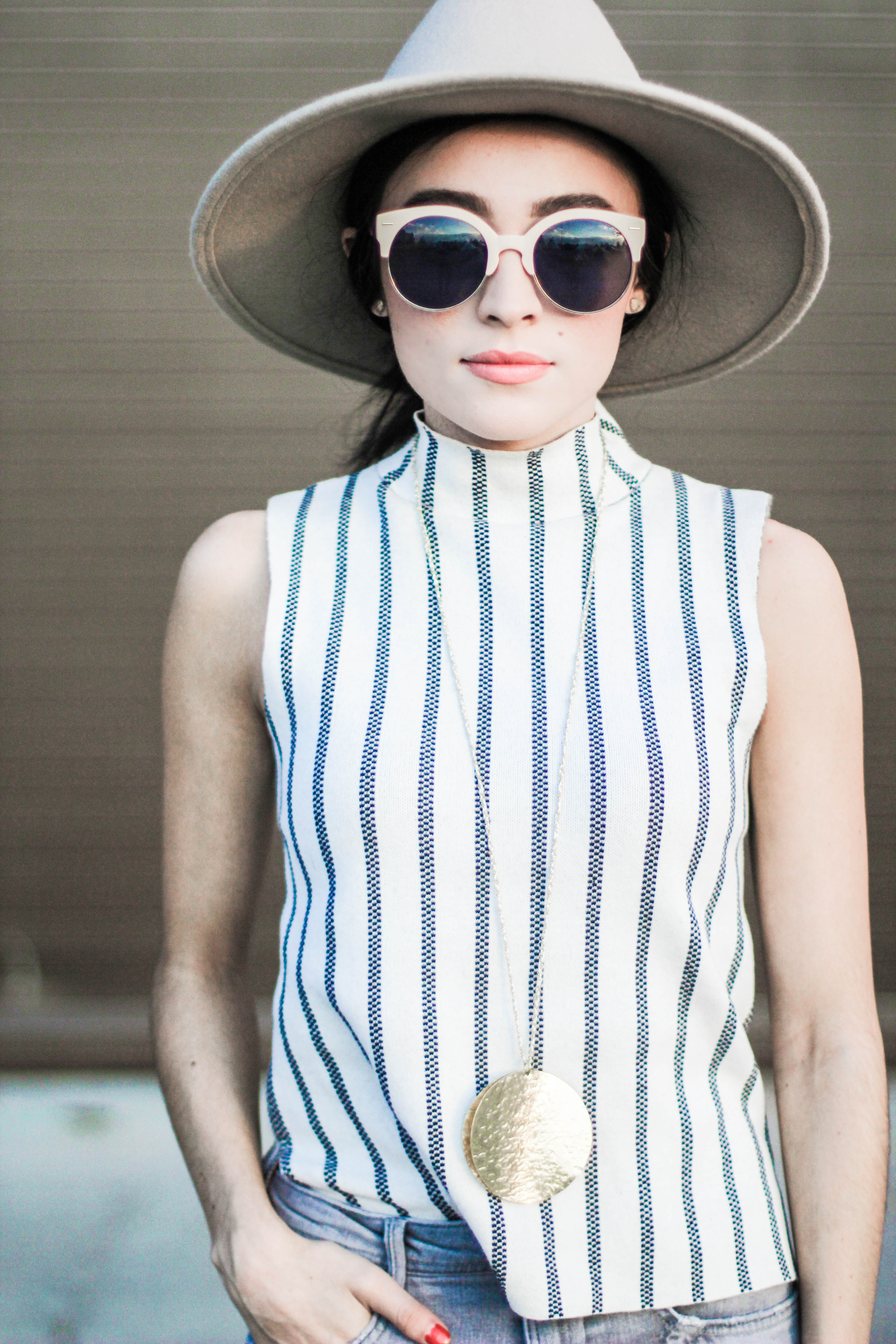 Top. Bottoms. Purse. Heels. Sunglasses. Fedora.