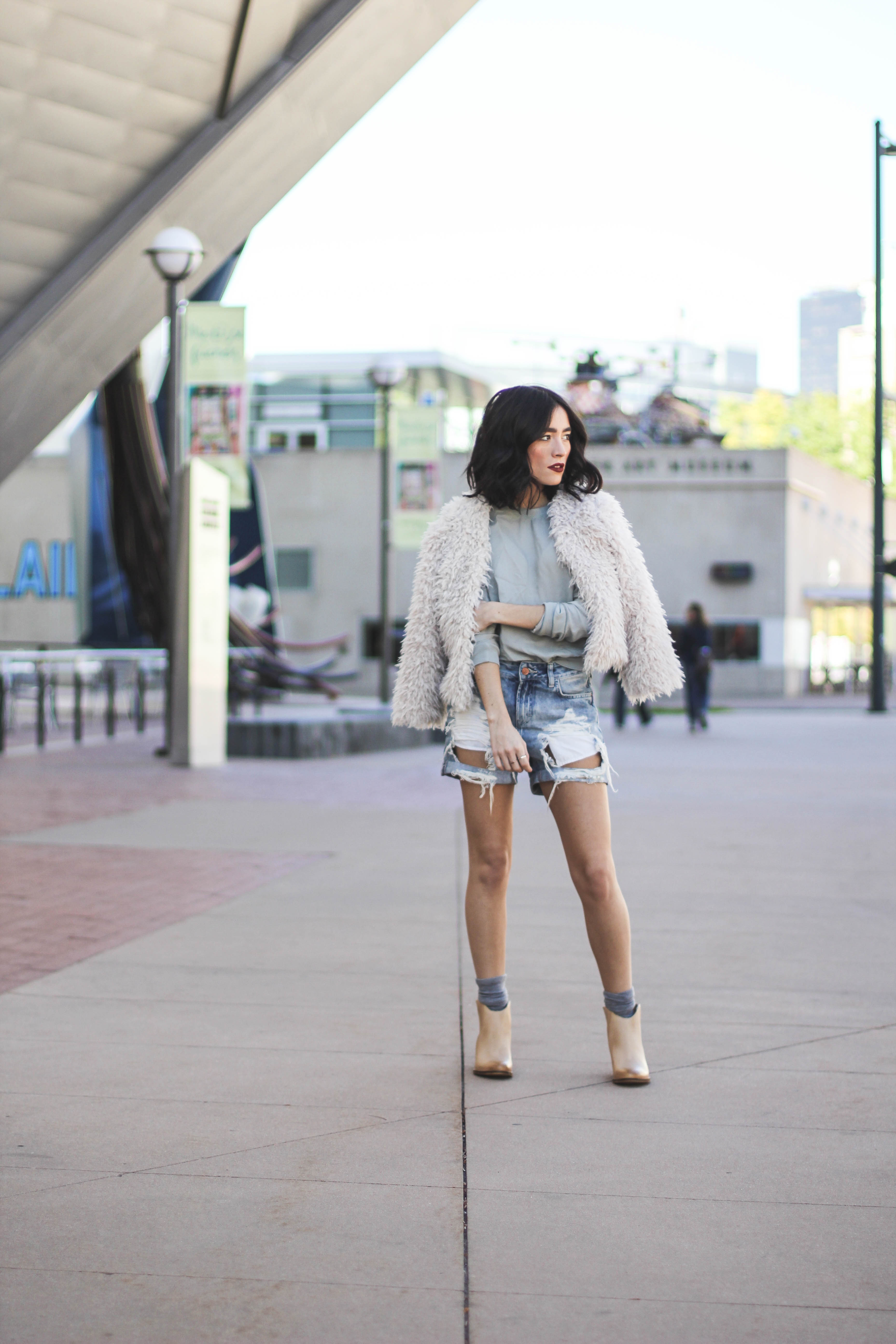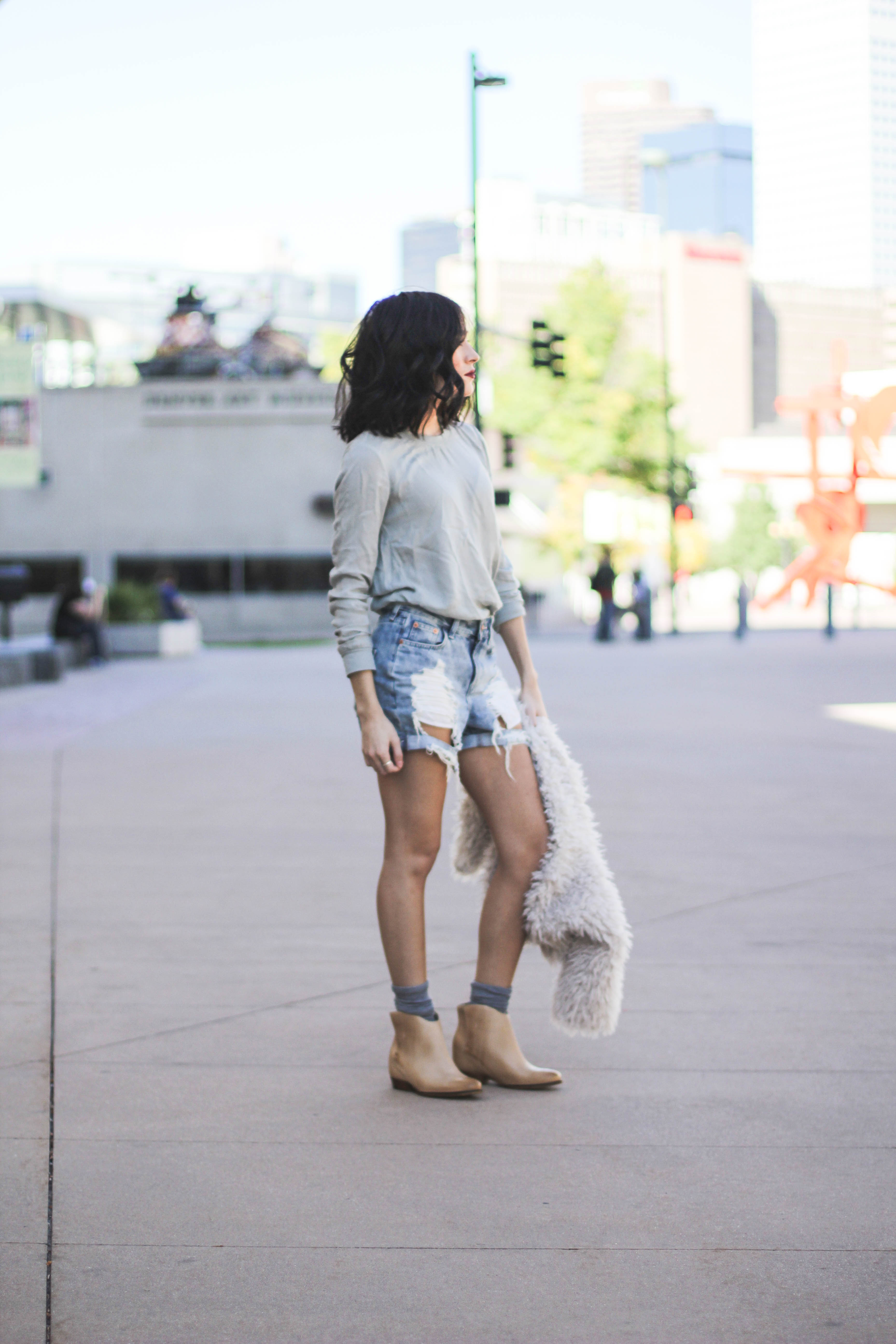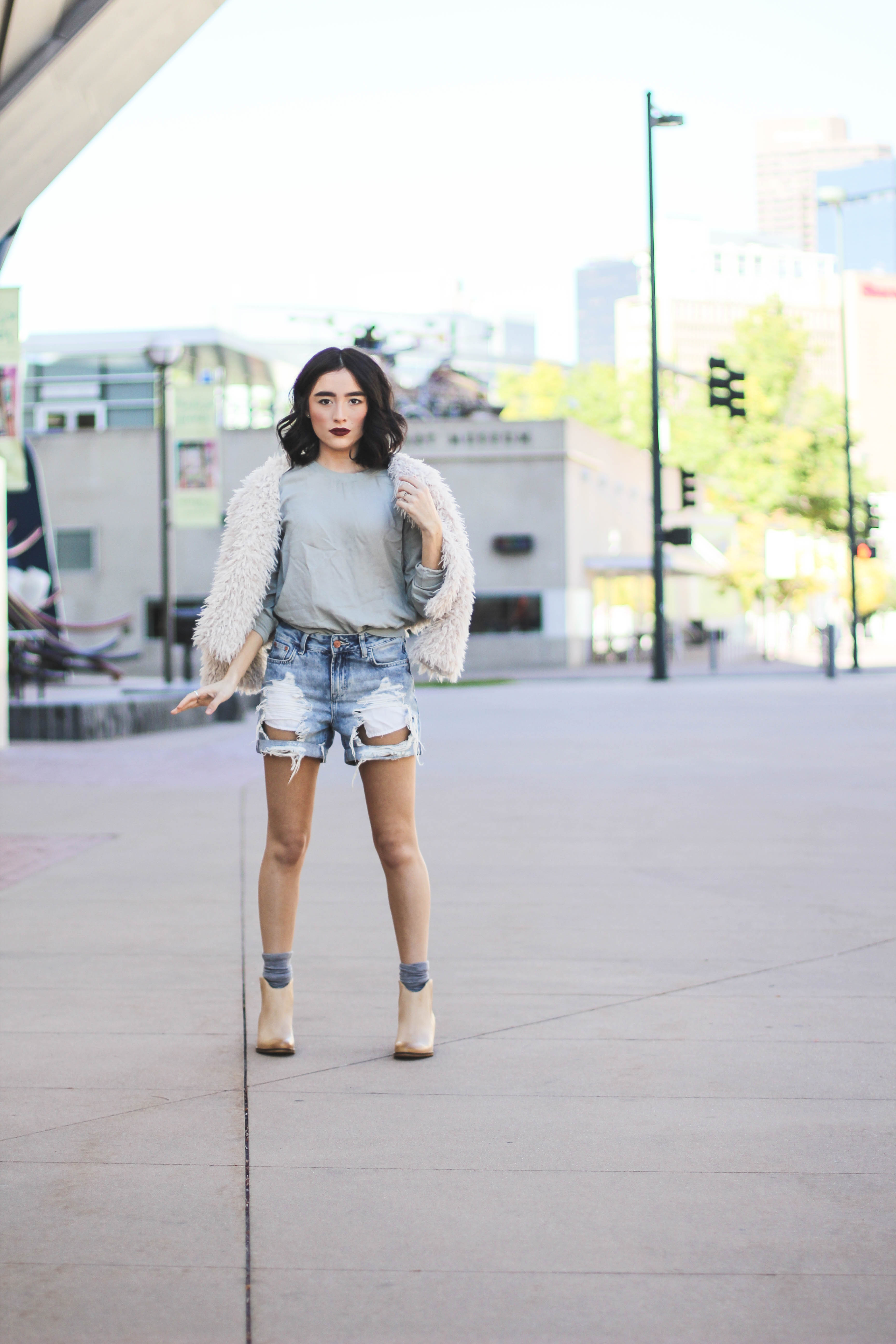 B is for best blouse ever. Bulky, boxy, blouse-y, you know name it, I want to wear it. I’ve always been a fan of shapeless pieces. I love oversized blouses and dresses more than the average girl should. I think what I love about this blouse in particular is the femininity it brings to any outfit. The relaxed butterfly sleeves make me feel like such a girl but completely relaxed all at the same time. Nothing is better than that in my opinion. I really wanted to dress up this light blue beauty to the max to show you what it’s capable of and what colors look best with this shade of blue. I plan on wearing it with many other bottoms besides this statement tulle skirt. My staple black skinny jeans or my current favorite bow-tie shorts are great candidates as well. The possibilities are nearly endless.