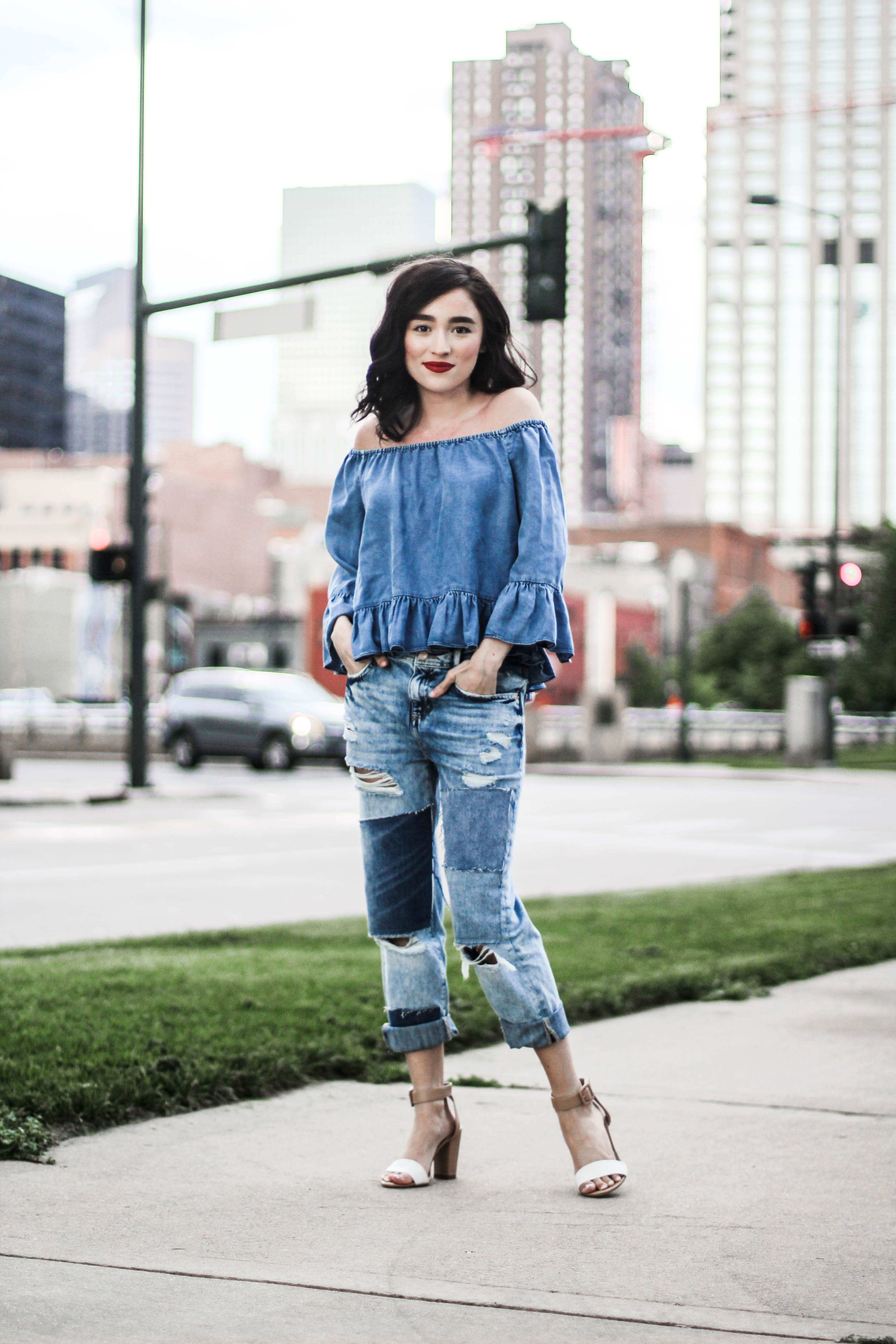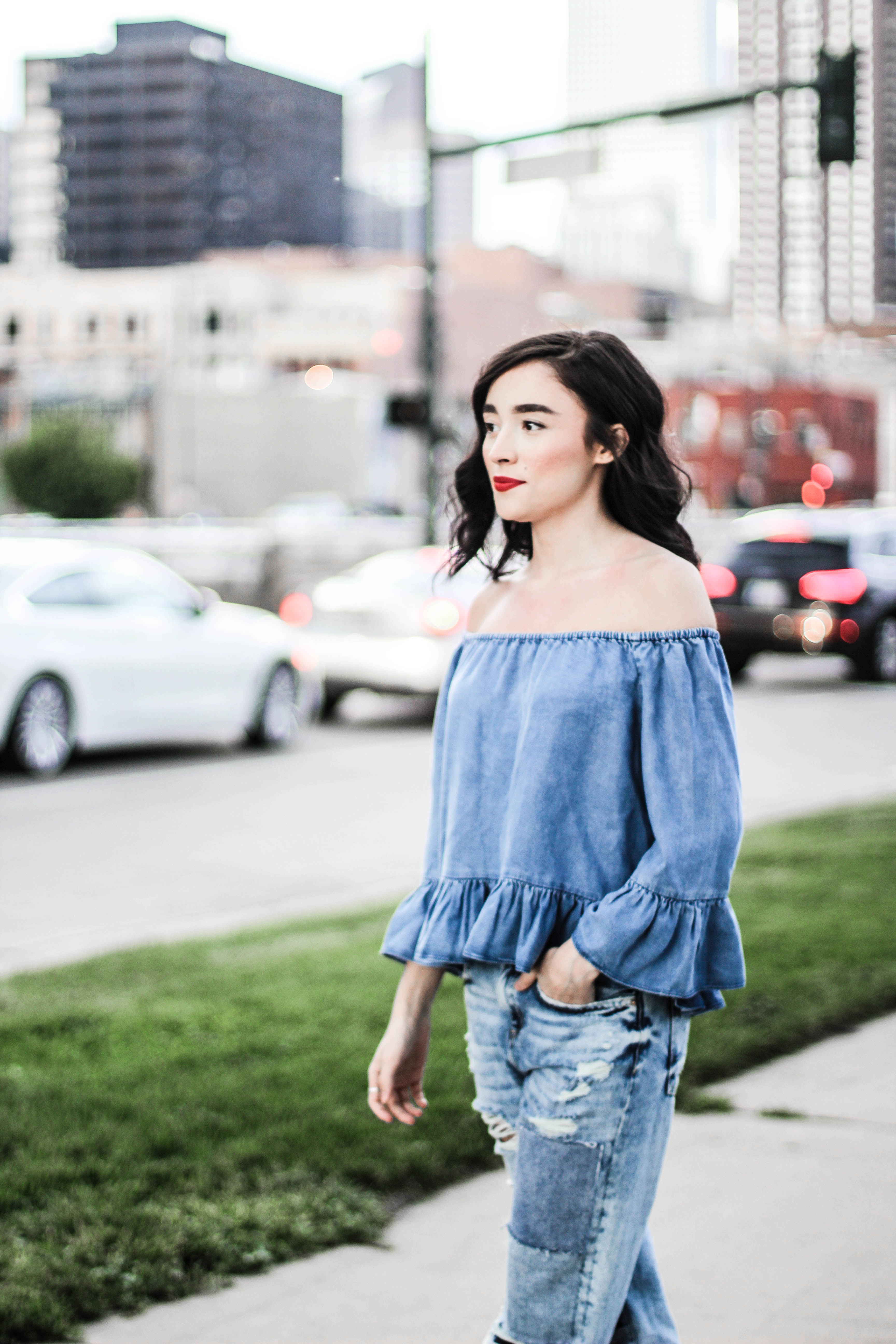Denim isn’t just about jeans anymore. Oh no girlfriend, it’s 2015 and we wear denim all over: Tops, skirts, shorts, dresses, purses, belts and even shoes. This infamous fabric has officially taken over the fashion scene and I’m not complaining one bit. There is nothing wrong with owning too much indigo, chambray and denim…or at least that’s what I continue to tell myself. I have an abnormal love for denim and all things blue. Every single person on this planet owns a piece of denim in their closet. It’s the number one absolute must-have wardrobe piece. I love to experiment with denim on a daily basis but my favorite thing to do pair denim with (surprise, surprise) even more denim. This look will never go out of style in my opinion. I really think it’s the easiest look to put together in a hurry. How do you glam it up you ask? It’s so simple. A red lip and heels, obviously. I could wear this outfit, and all similar denim on denim outfits, for the rest of my life. If I was a designer (as if) and I had my own collection, you bet it would consist of new twists and takes on modern day denim.
