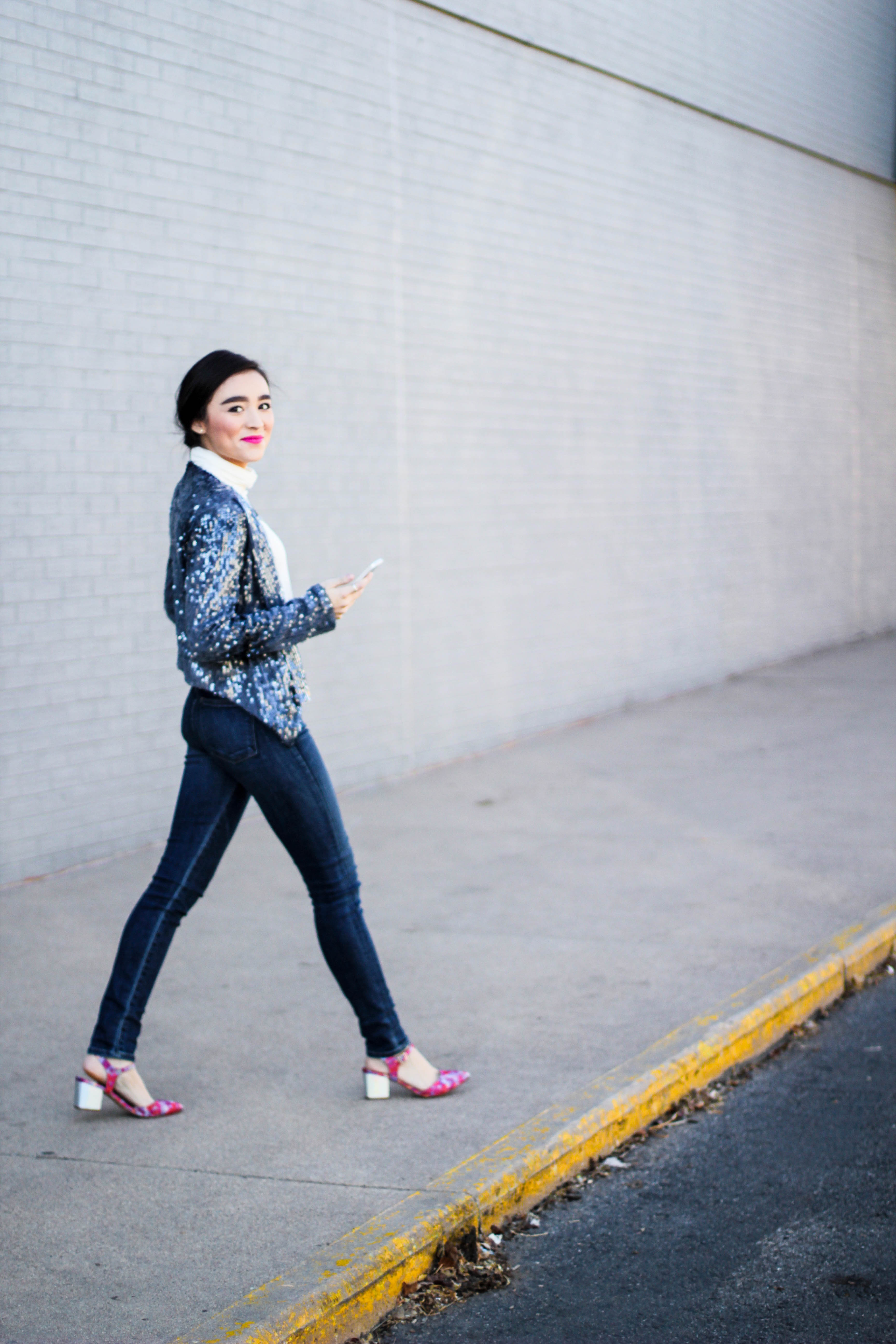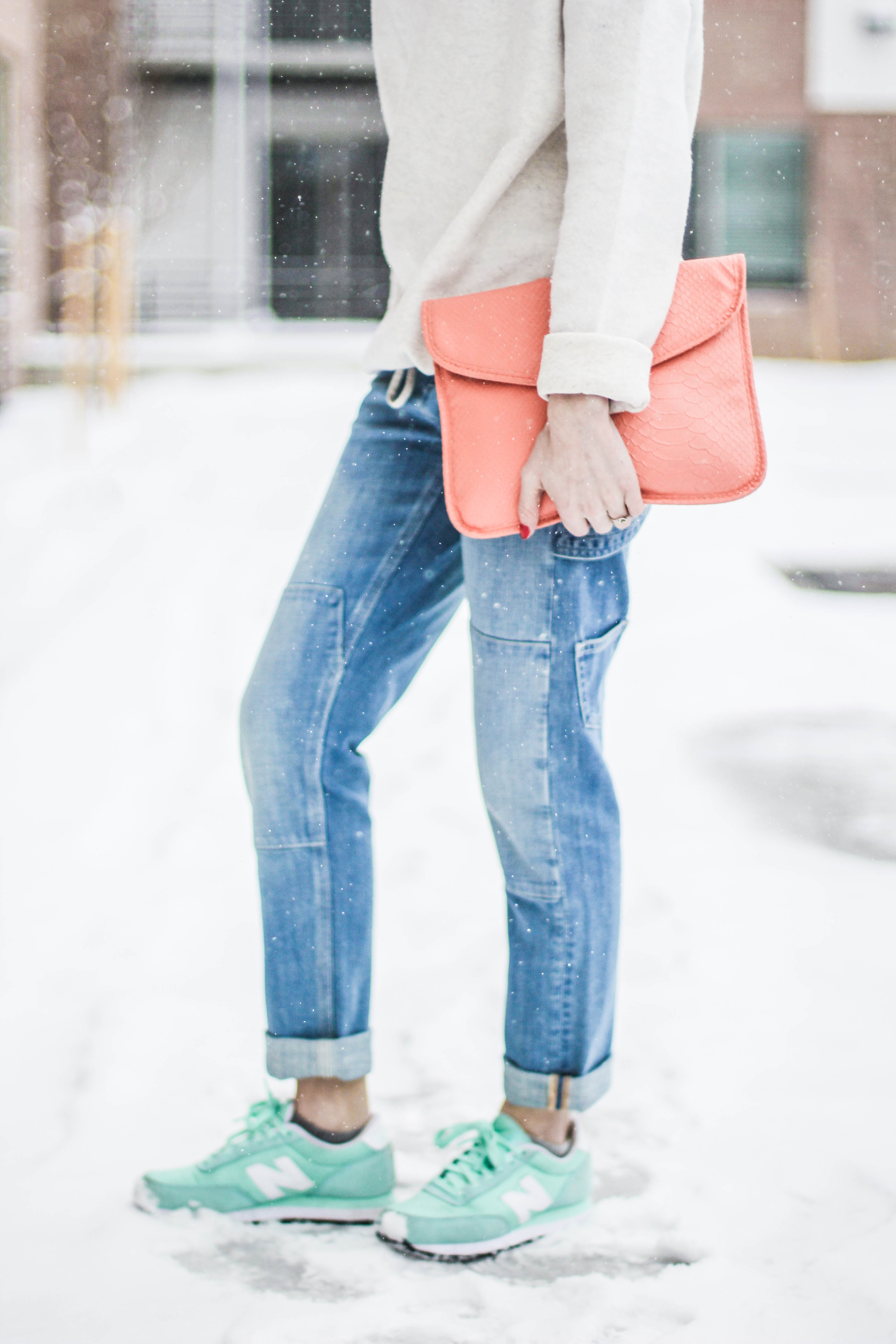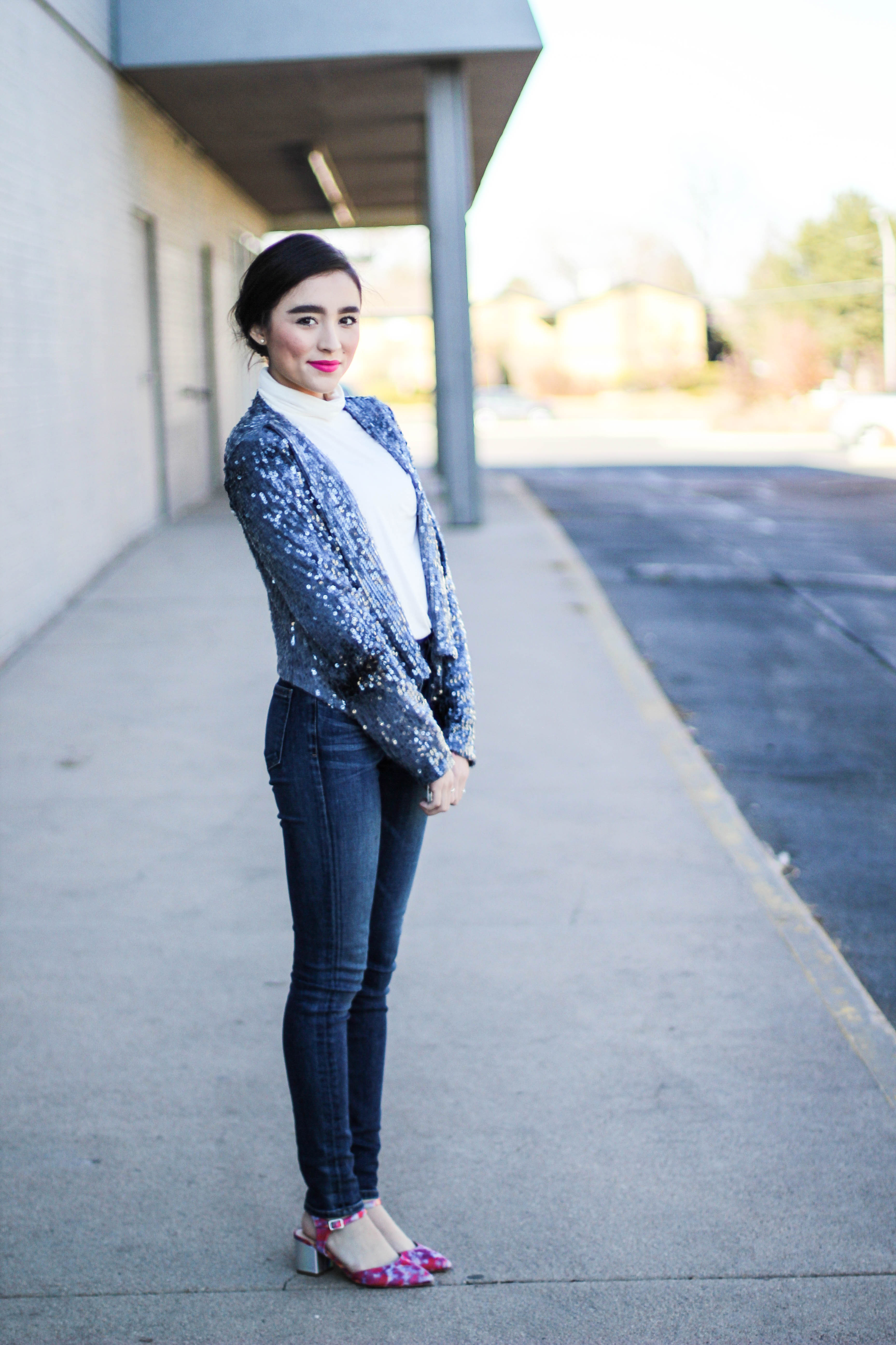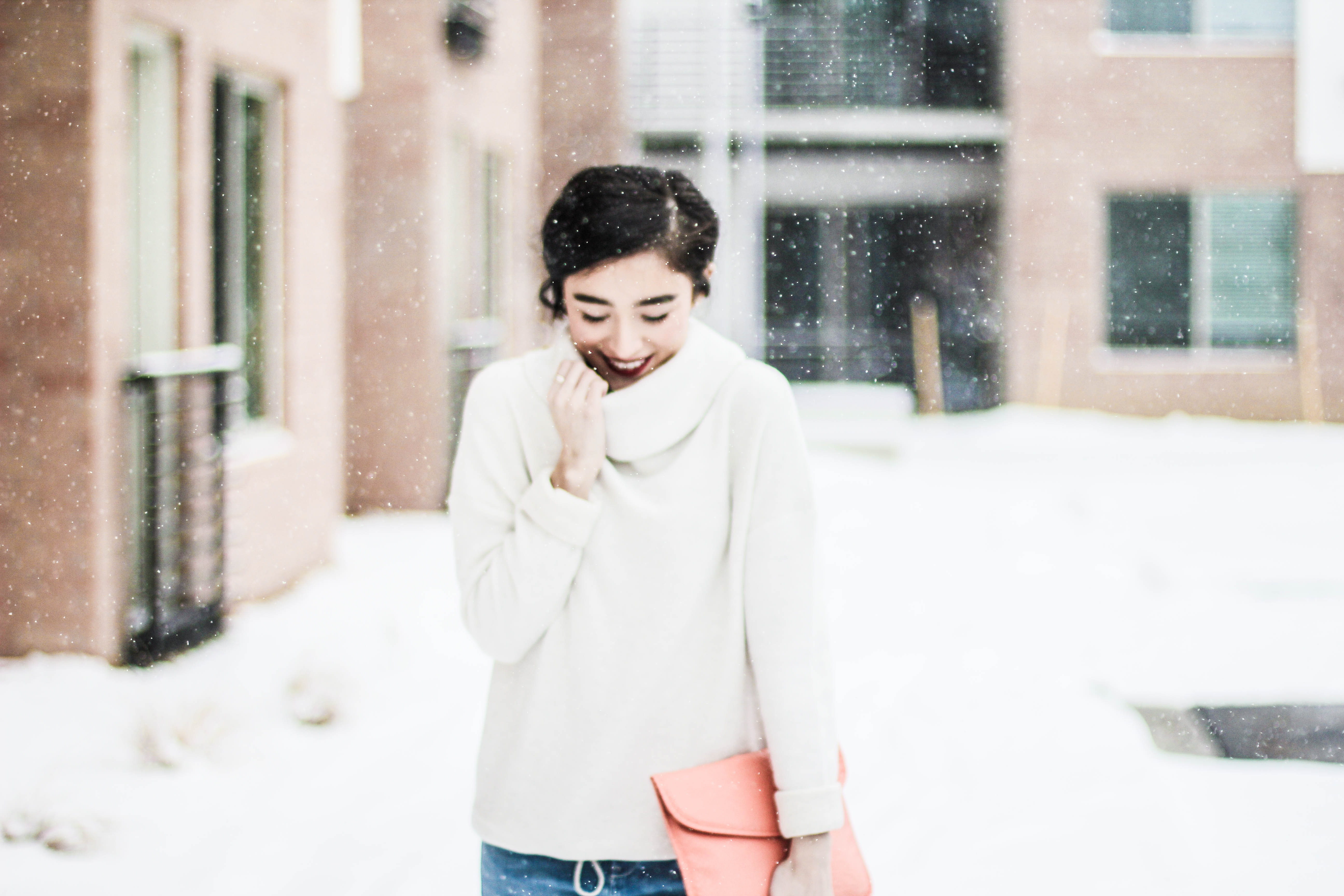 If you thought this post had anything to do with the movie “50 Shades of Grey” you can go ahead and click the x at the top right of your screen and get the heck out of here because no sir, no thank you. I will not be “submitted” into that kind of behavior. (Ha. I’m so clever.) No chains or whips could hold me back from wearing an all denim outfit. I’m having so much pun. Okay, I’ll stop. Back to the outfit: I wear denim on denim time and time again because I don’t think this trend ever goes of style. I didn’t want to go overboard on denim today so I threw on my all time favorite sweater to mute out the bursts of blue that’s happening in these shots. The beauty of an all denim look is that you don’t have to stress one bit about what color of lipstick to wear. You could wear a bright yellow lipstick and it would still look good. I chose red because I’m on a red lip kick right now. Keeping it classic is always a good, safe choice. I kept this look casual with converse shoes but had to fancy-it-up a little with a touch of gold aka my purse soulmate.