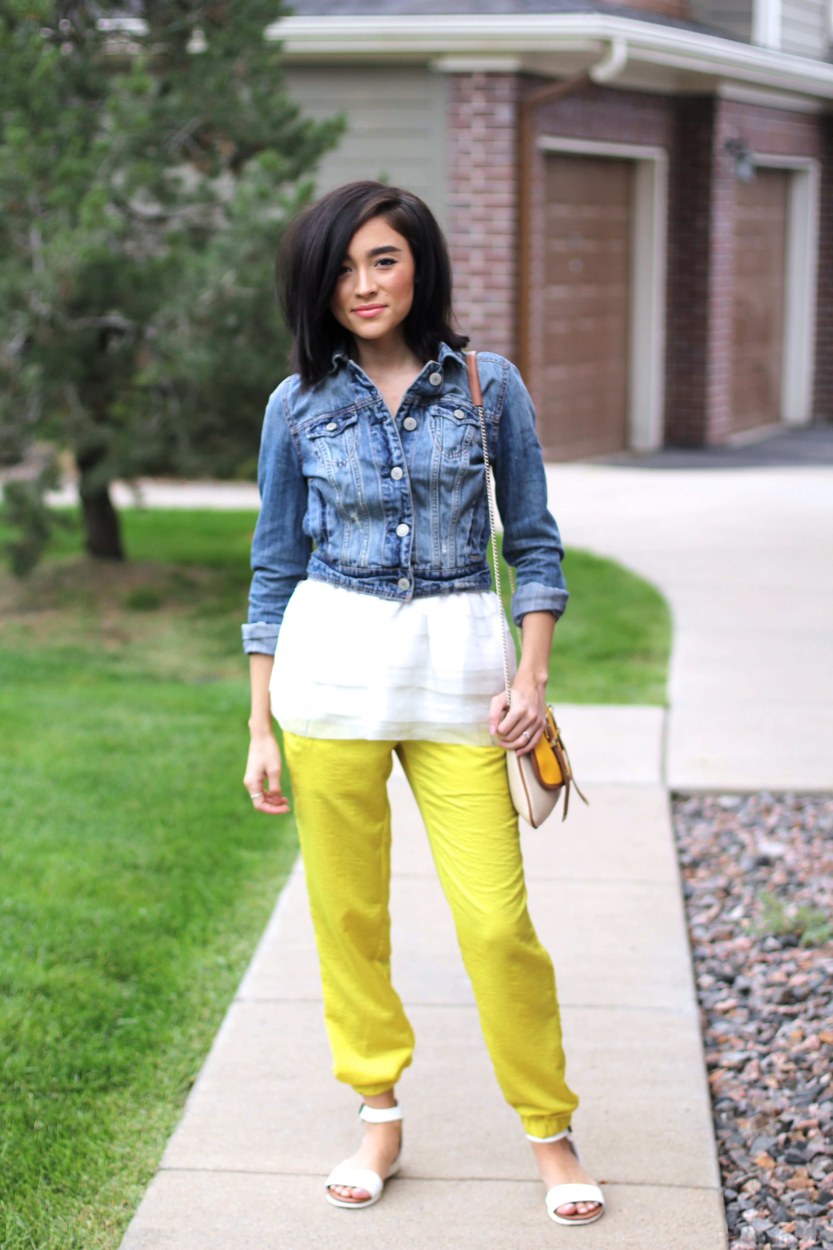 I’m currently in bed surrounded by kleenex and medicine because go me… I’m sick. Luckily as of now its just a head cold but a pounding one at that. I ALWAYS ALWAYS get a cold when the weather is about to change so I shouldn’t be too surprised. I wish I could lay in bed all day on this lovely Sunday and blog about something quirky but I just don’t have the energy for it or the time because homegirl has to go to work. Gotta work through the pain to pay for those expensive outfits if you know what I mean. Here’s a simple, bright outfit that is tied together by a classic denim jacket. A denim jacket will never go out of style so if you’re considering buying one…JUST DO IT. You’ll never go a day without reaching for it. Trust me. Well that’s all for today my friends. Go take your vitamins so you don’t end up miserable like me.