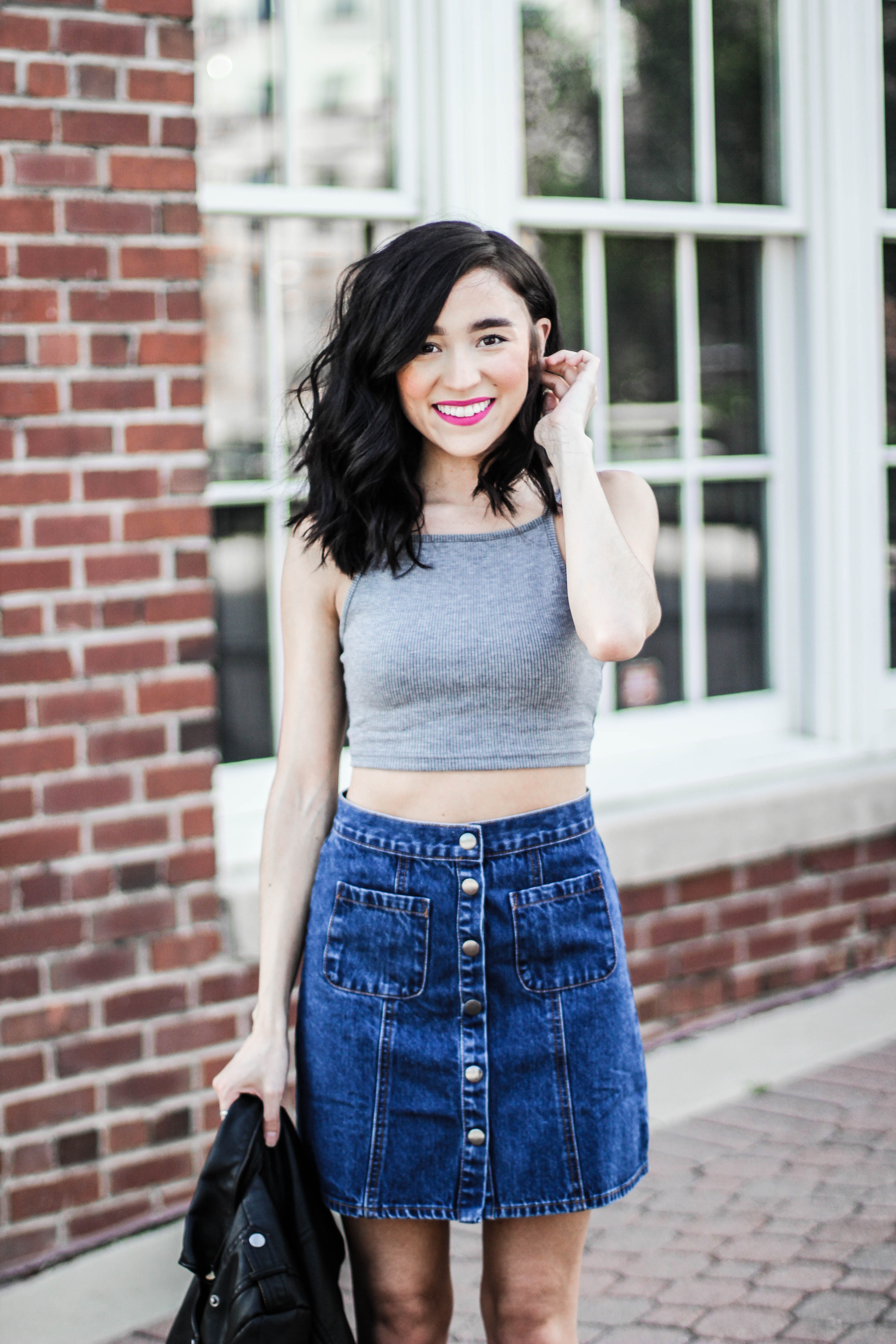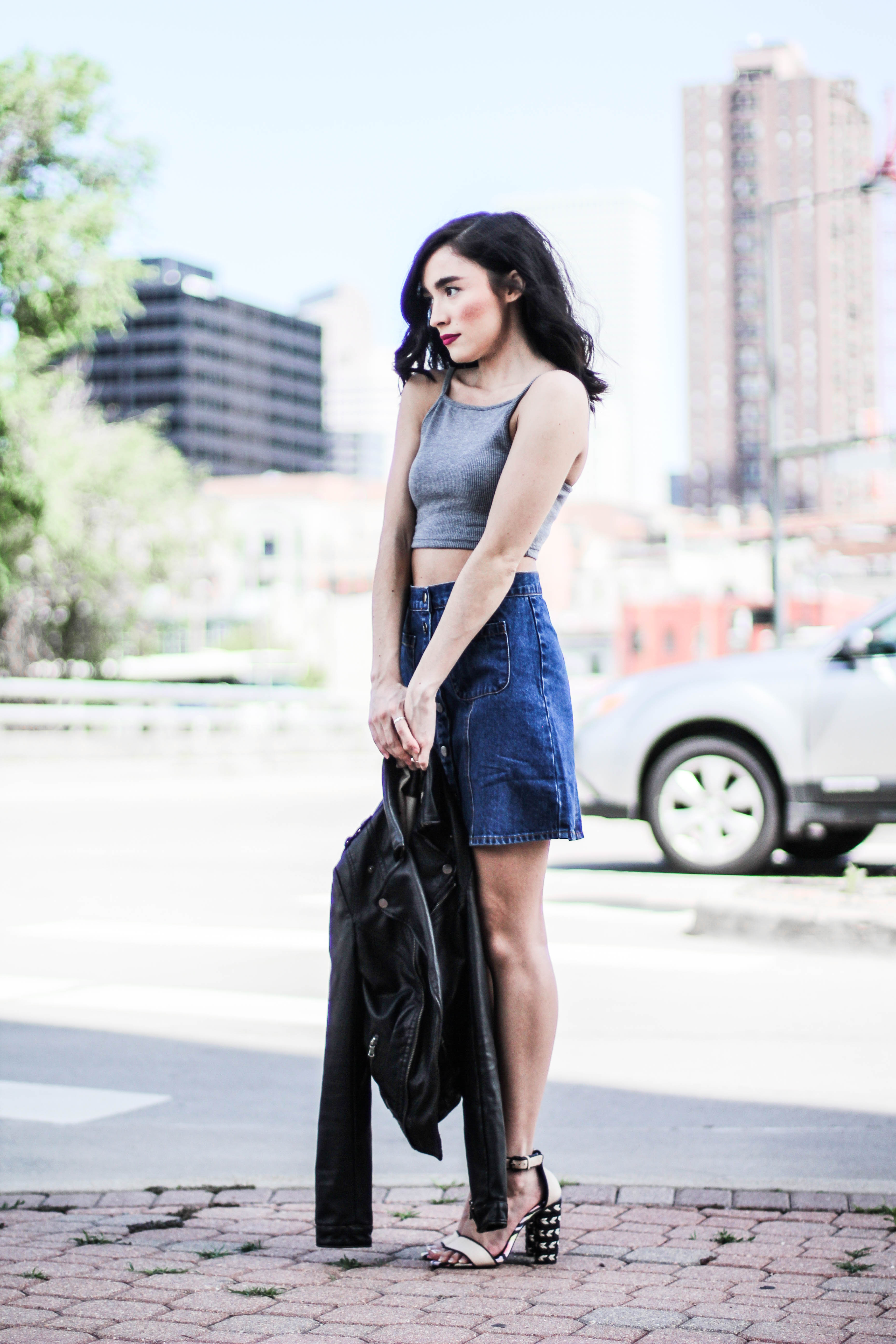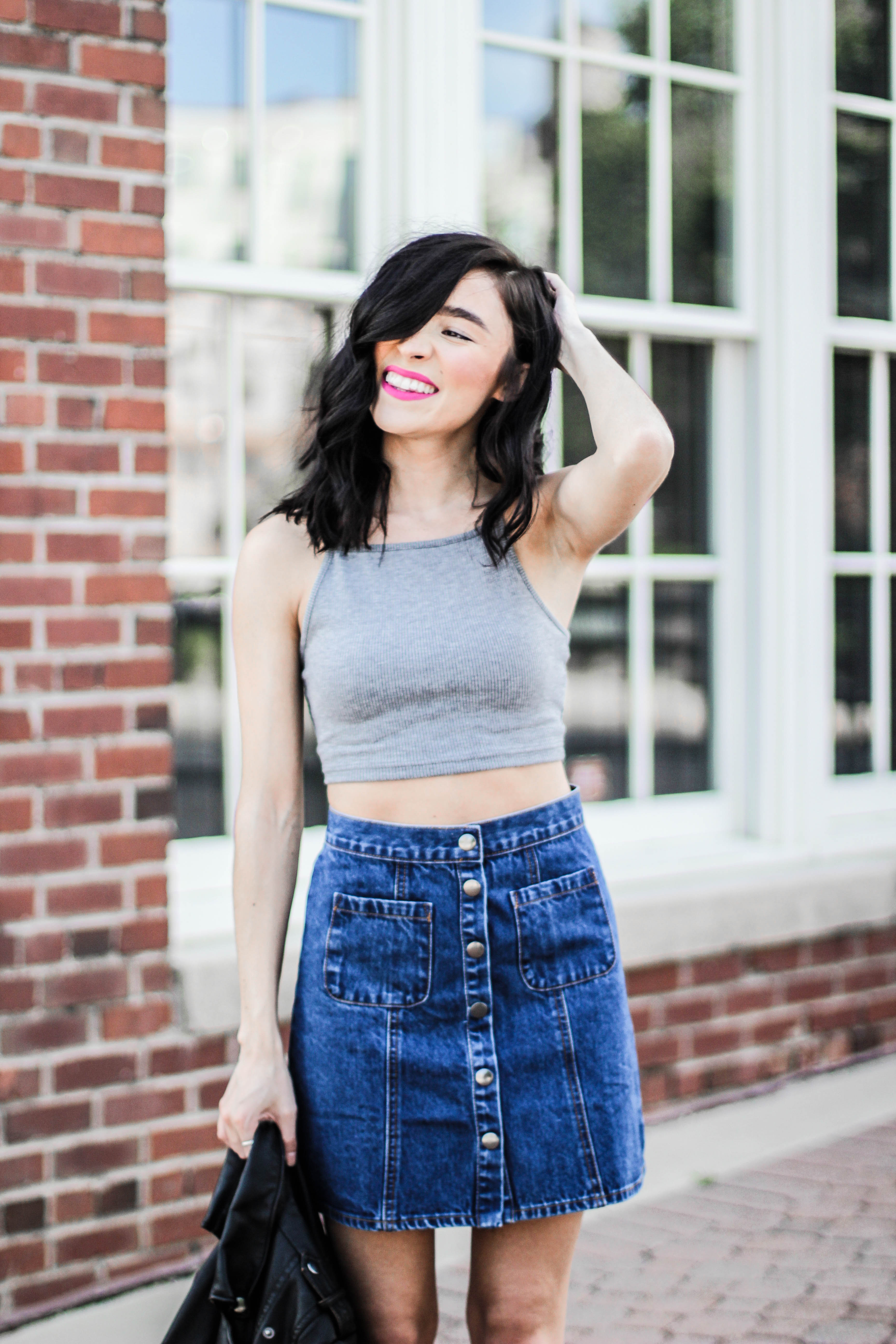 This post is for those minimal but trendy ladies out there. I always love adding easy, breezy outfits to my blog because it’s very likely that you own similar pieces in your own closets. I’m sure you have a grey crop top and denim skirt… and if you don’t, you should because they are all the rage right now. The 70’s styled denim skirt is so popular at the moment, every store has recently came out with their own versions of it. I also see them every single time I check my Instagram. I feel like I belong on a modern day version of “That 70’s Show.”